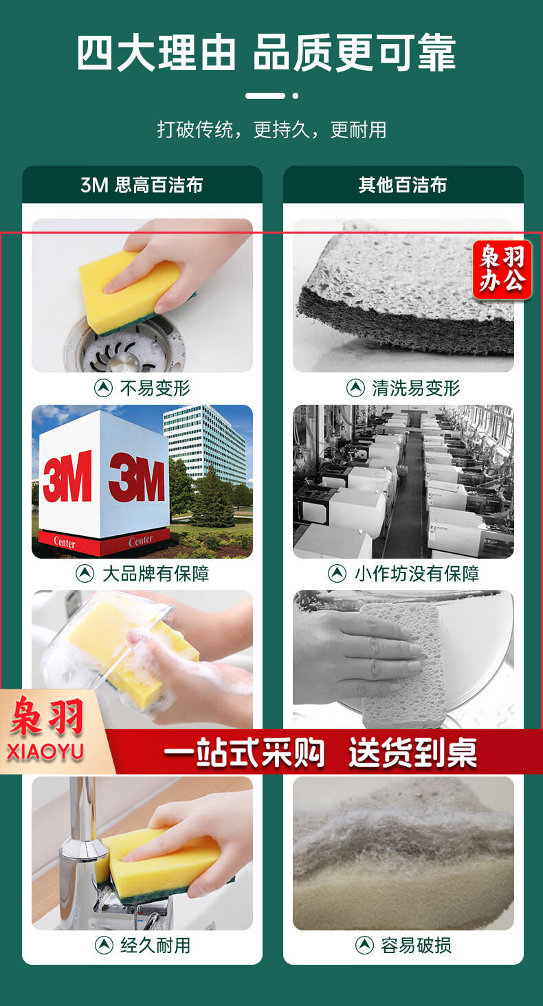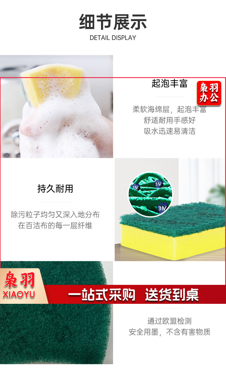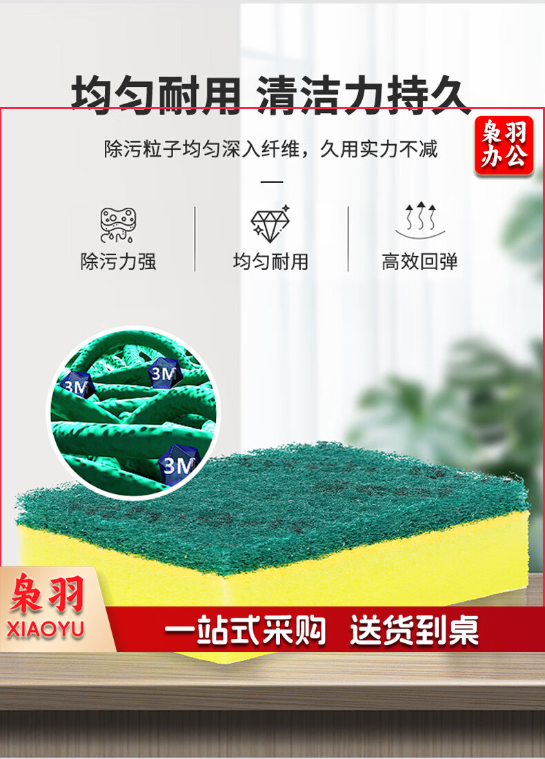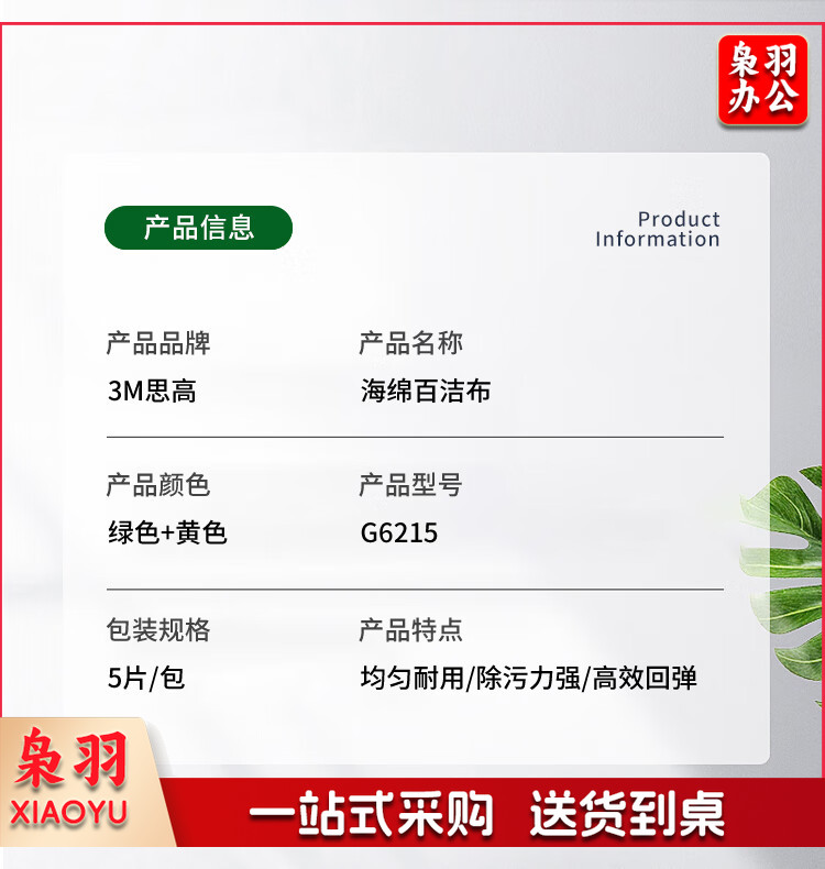 3M思高海绵百洁布洗碗布刷碗擦锅海绵擦 G6215高效厨具清洁耐用去油污 绿黄色 5片装