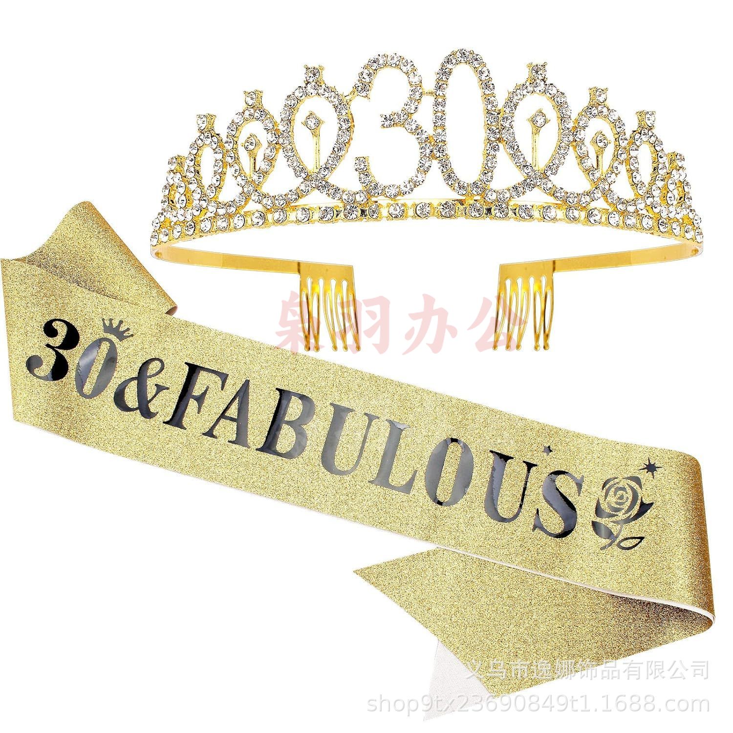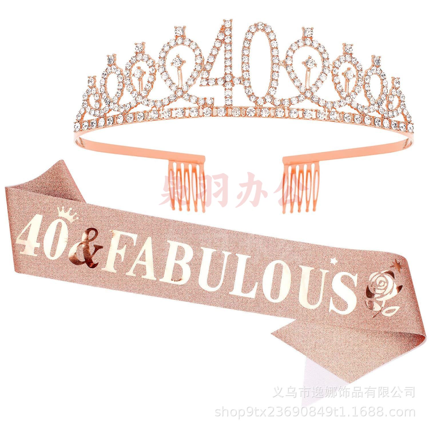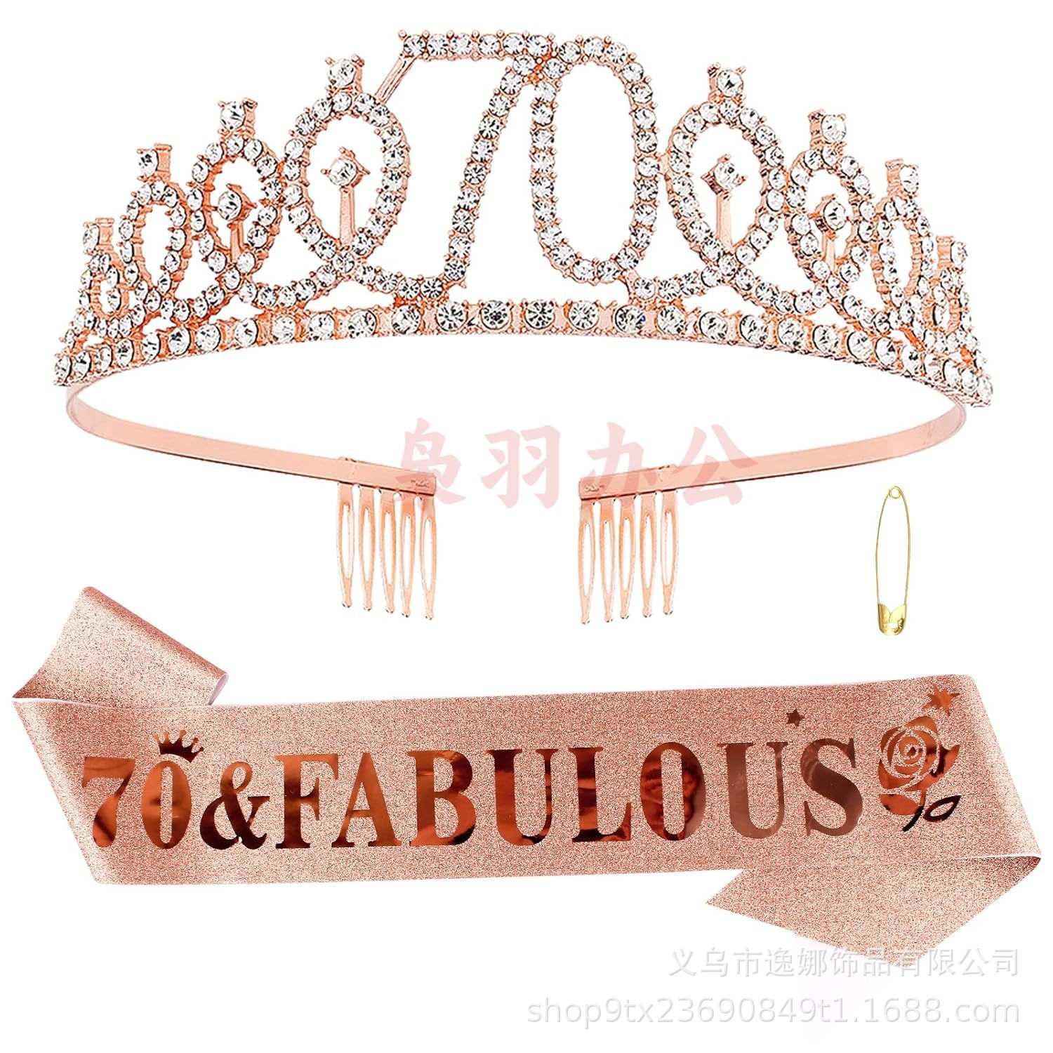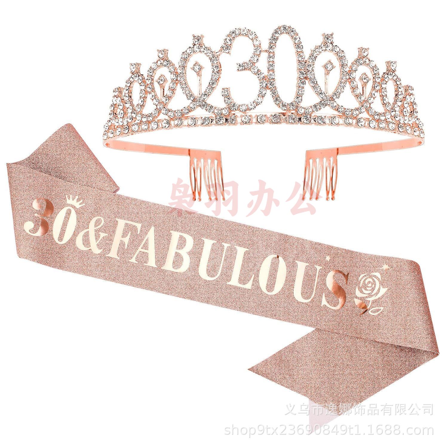 数字30 40 50 60 70生日皇冠玫瑰花礼仪带套装水钻头带腰带女王