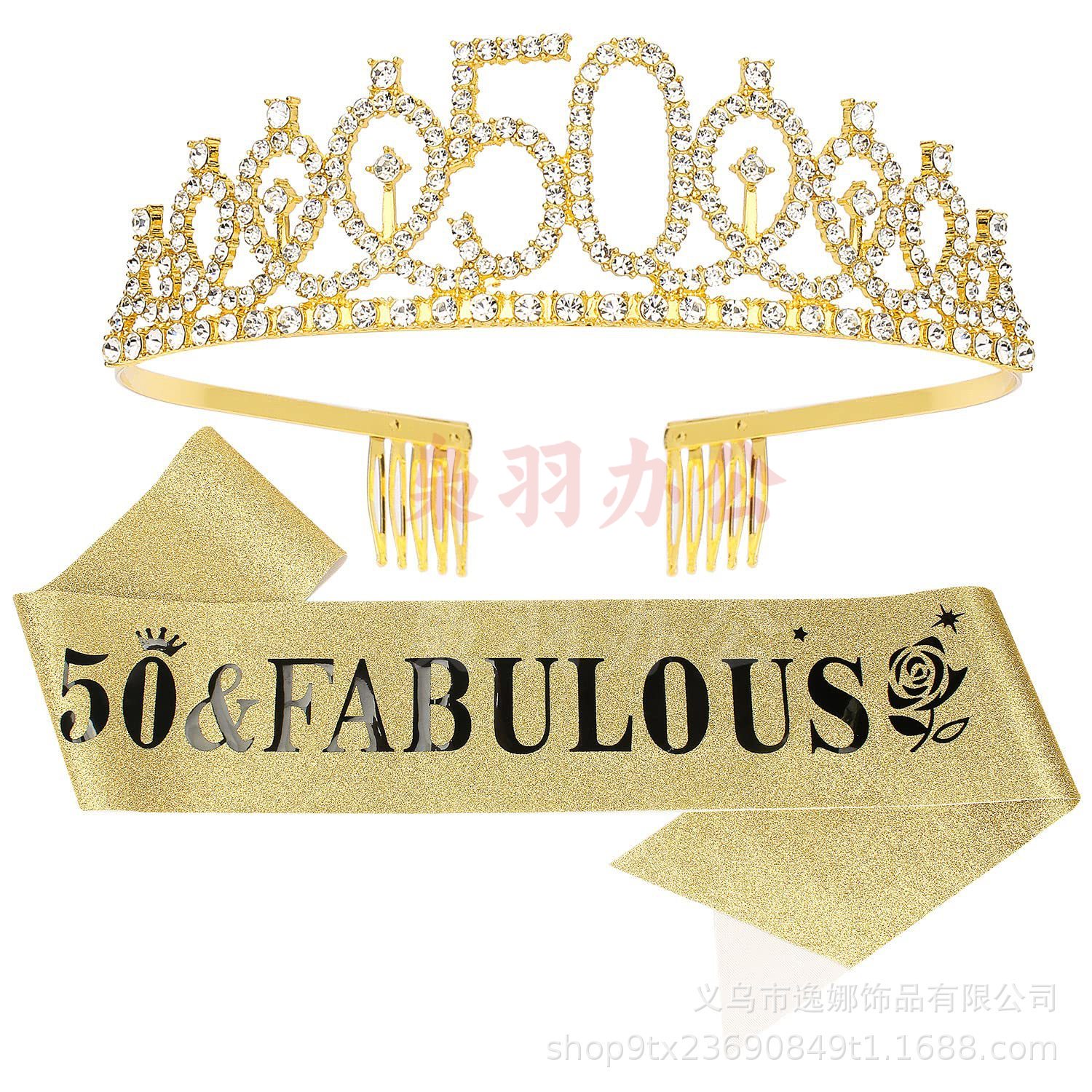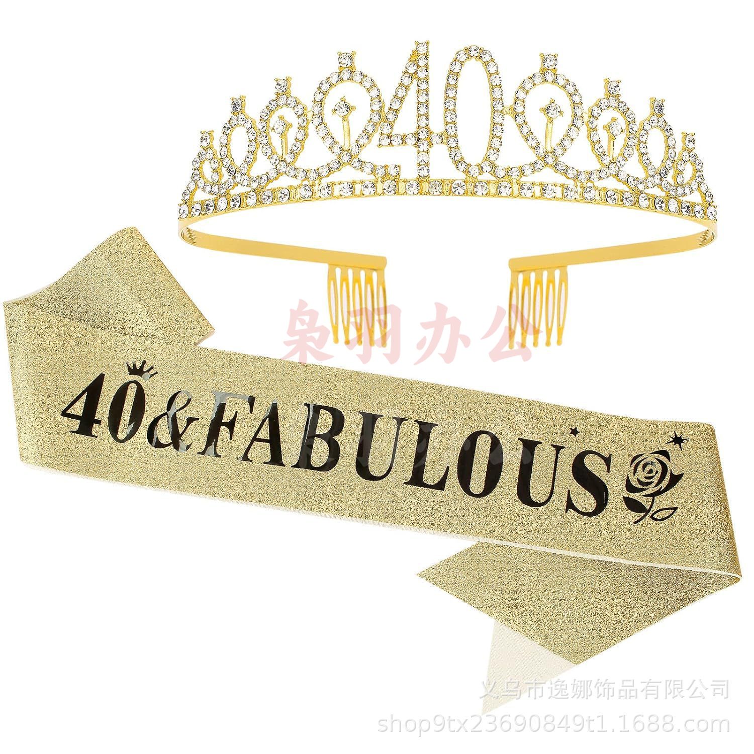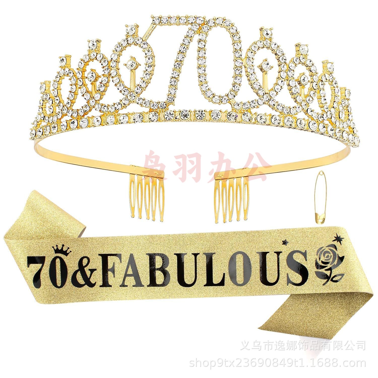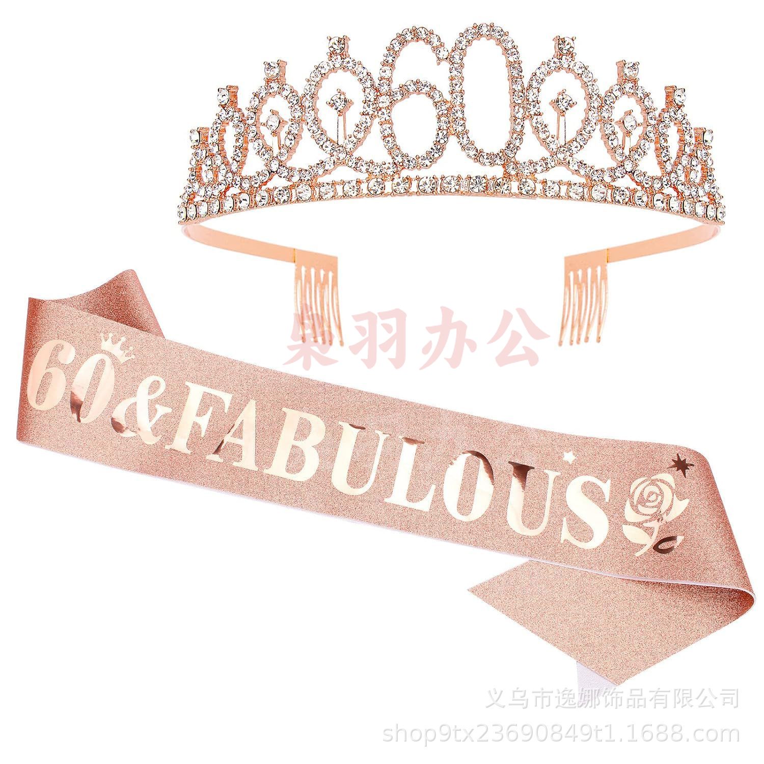 数字30 40 50 60 70生日皇冠玫瑰花礼仪带套装水钻头带腰带女王