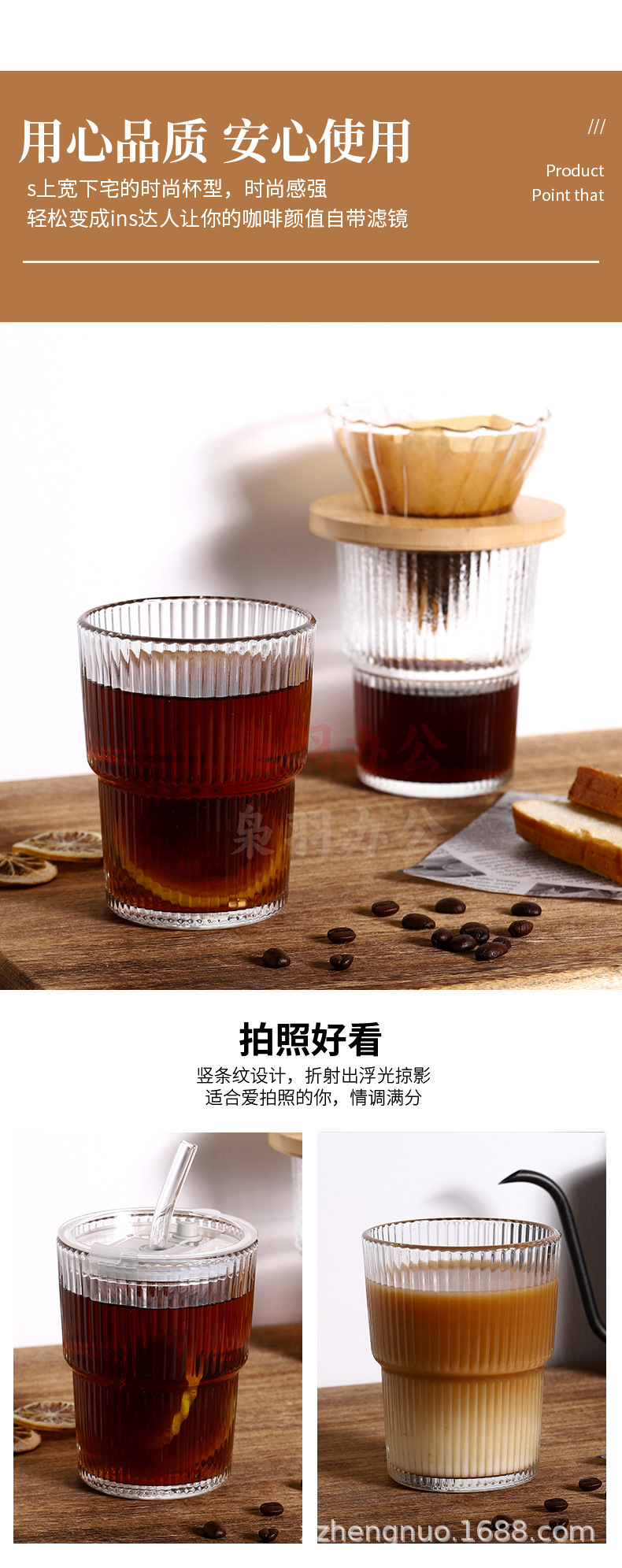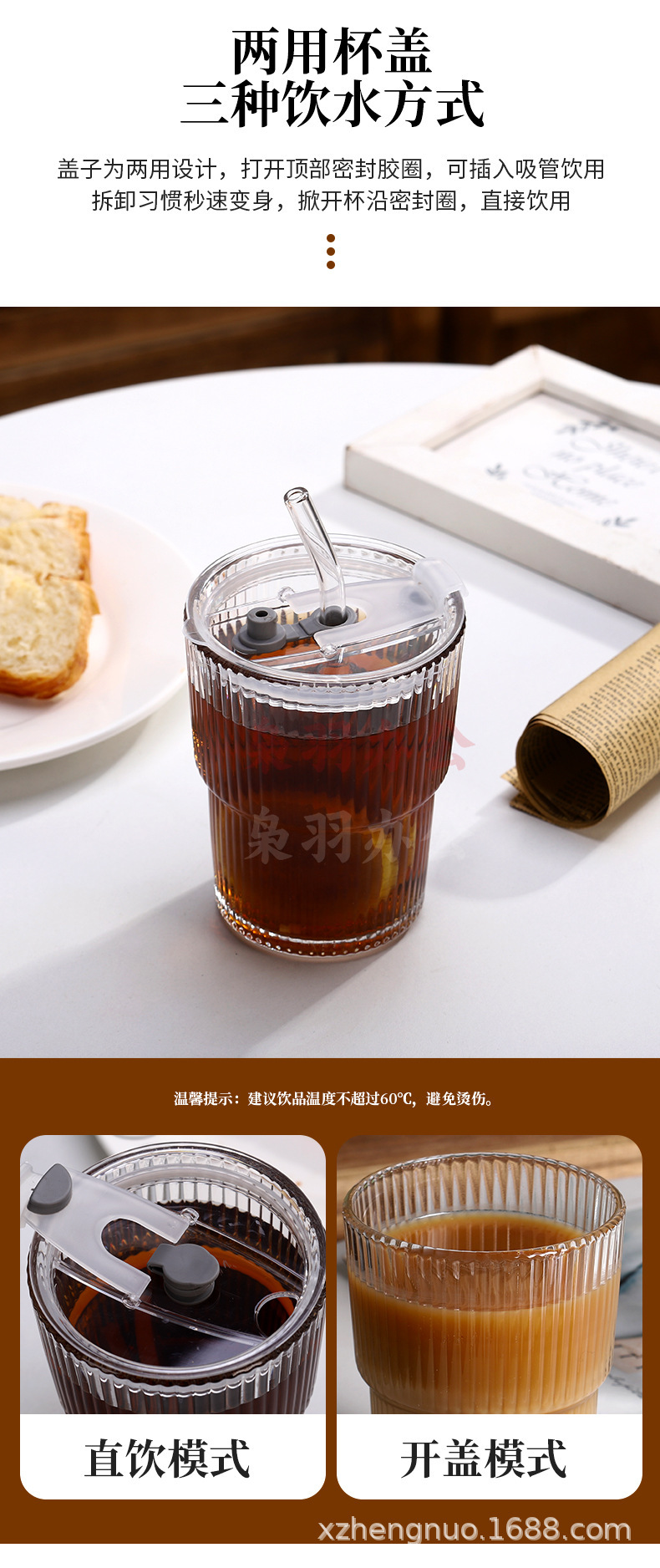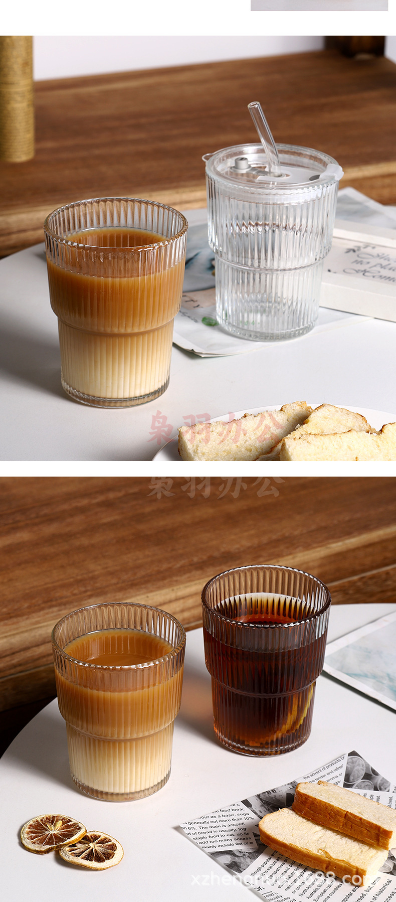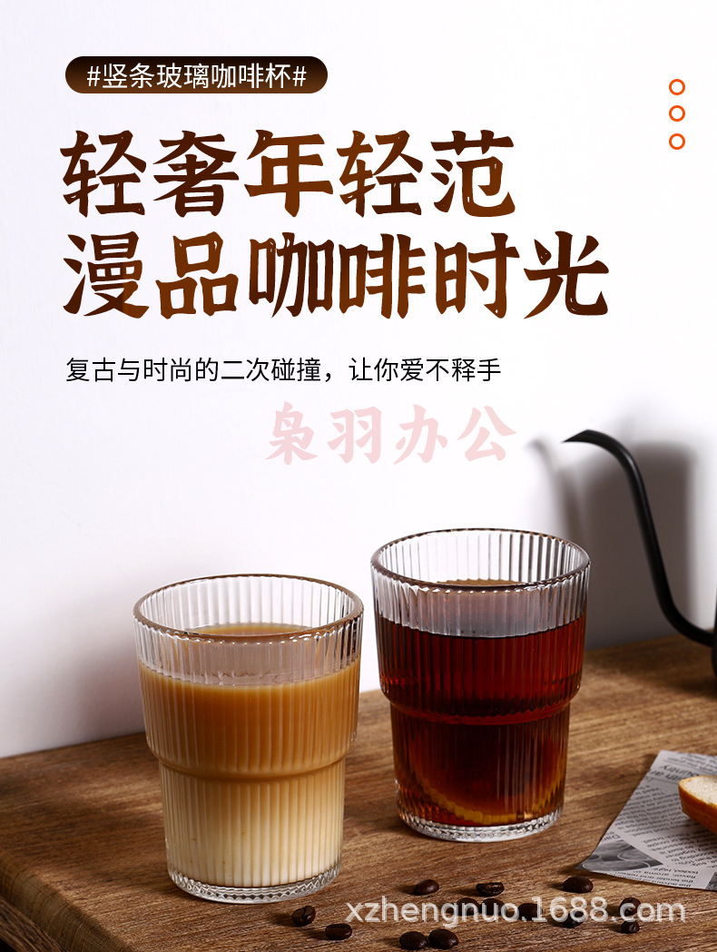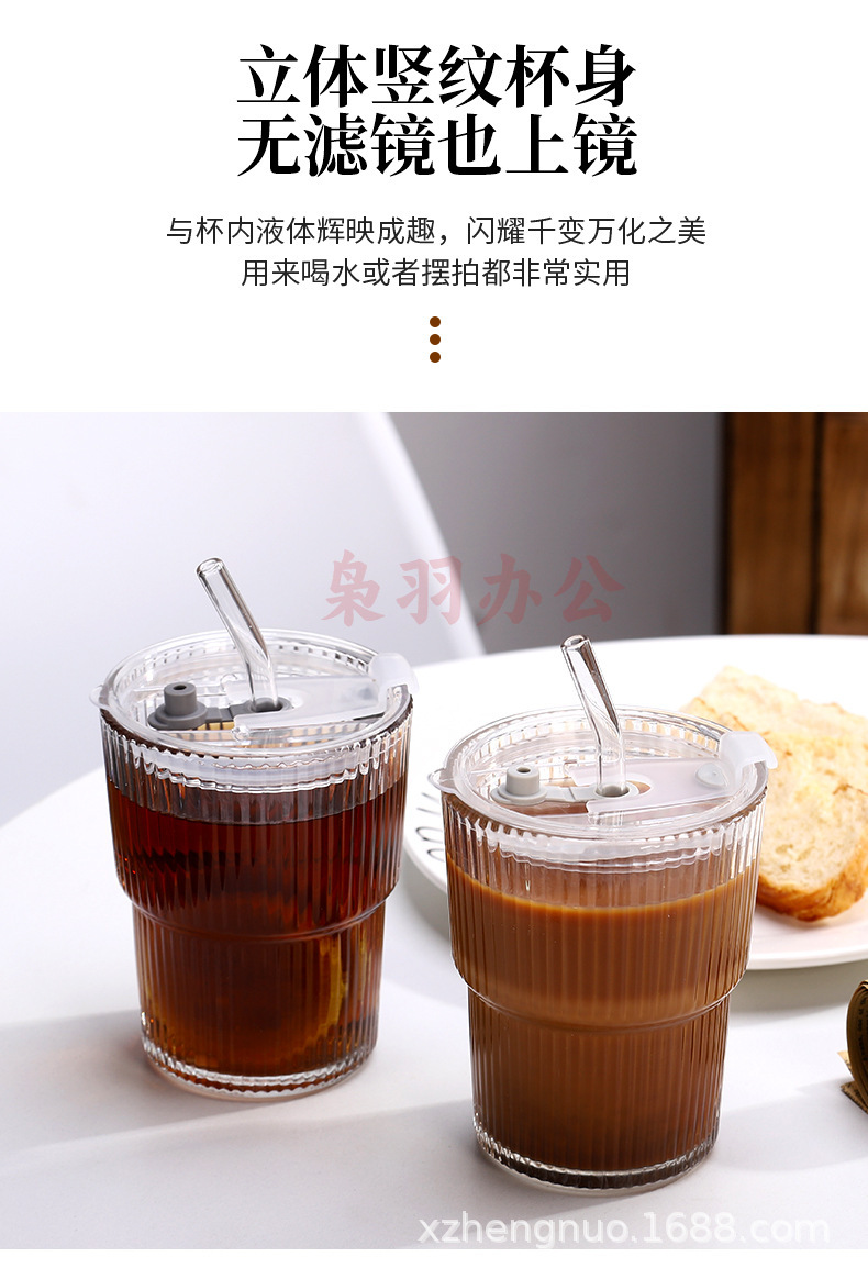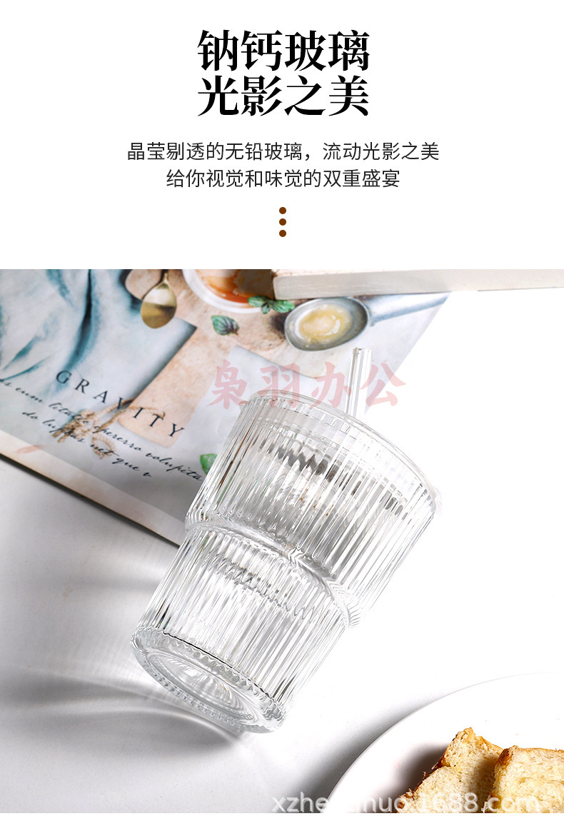 竖条纹竹节杯玻璃吸管咖啡杯子高颜值双饮杯地推礼品杯 ins风水杯