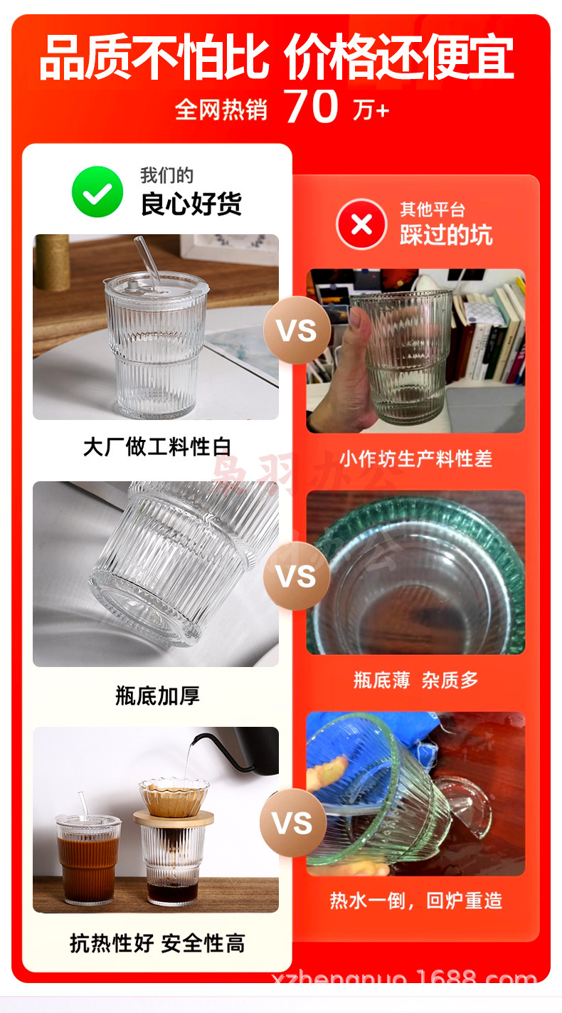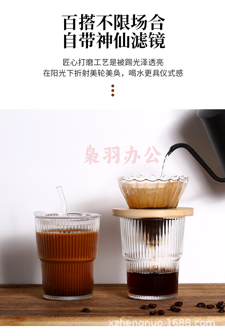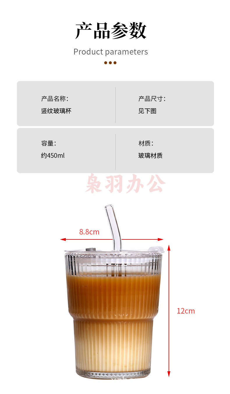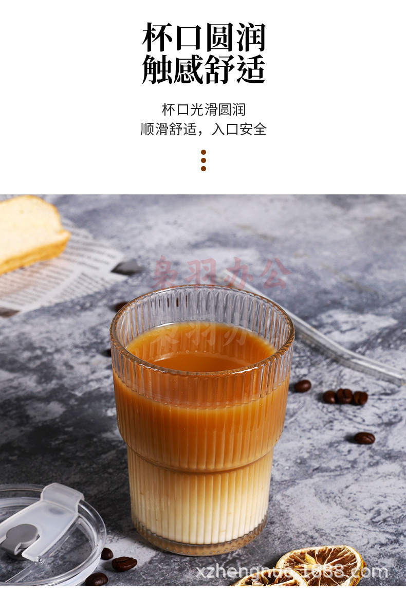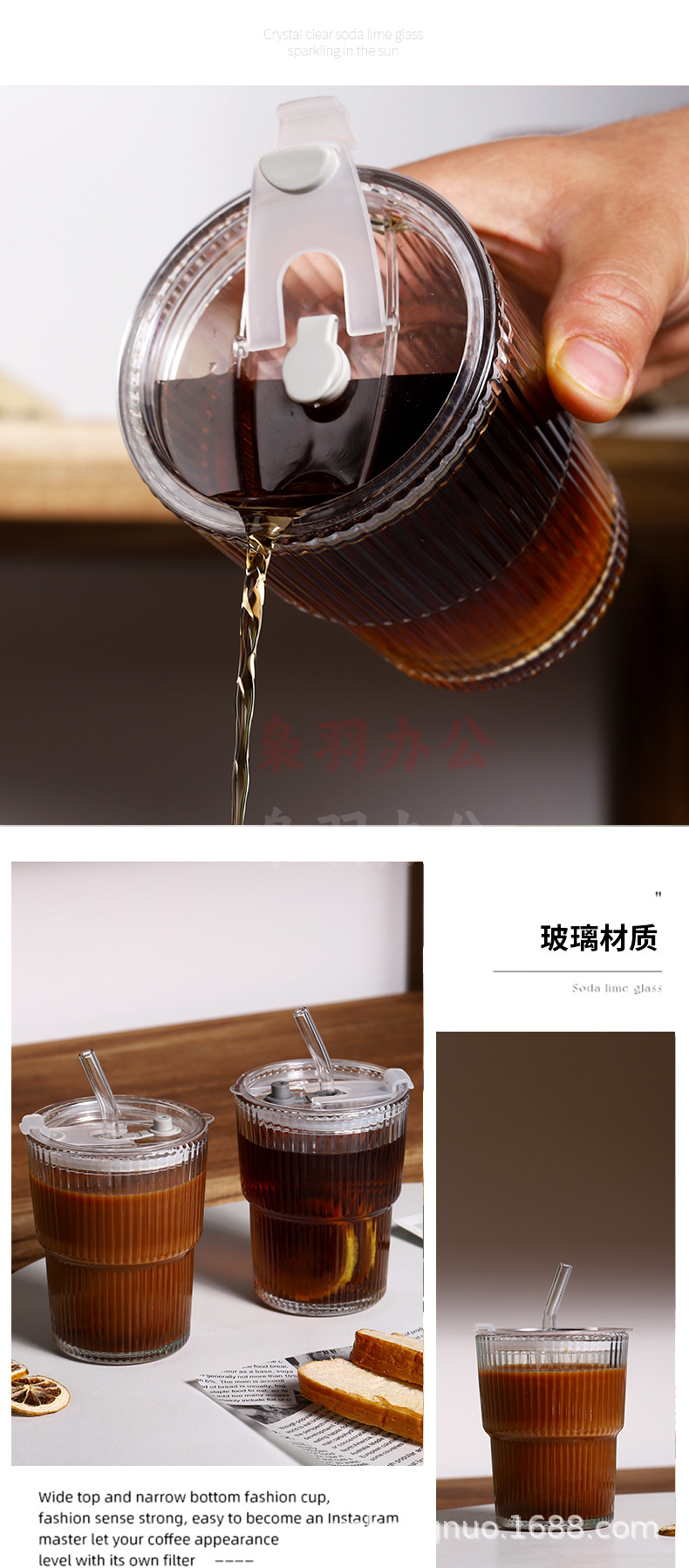 竖条纹竹节杯玻璃吸管咖啡杯子高颜值双饮杯地推礼品杯 ins风水杯