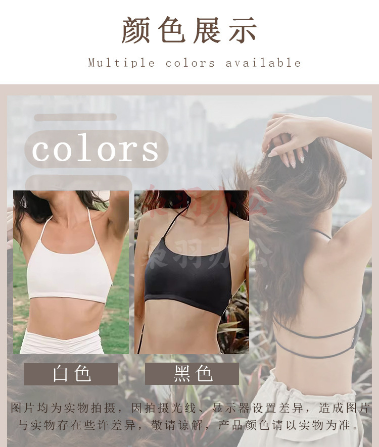欧美挂脖运动内衣 女 夏季细带性感美背健身带胸垫文胸瑜伽服上衣