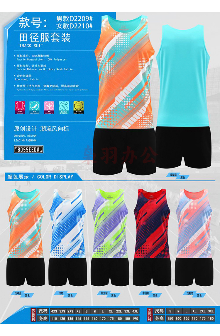 速干透气学生马拉松跑步背心女儿童田径服套装
