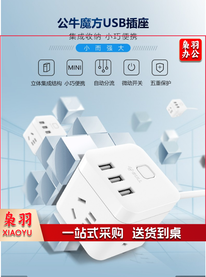 公牛(BULL) GN-U303U 魔方USB插座 插线板/插排/排插/接线板/拖线板 3USB接口+3插孔全长 3米