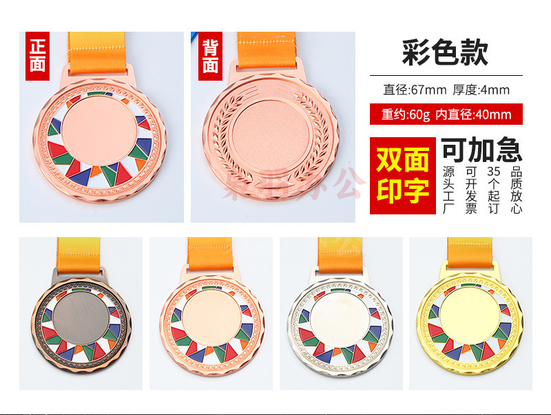 通用款运动会金属奖牌比赛挂牌铜牌 马拉松奖牌定制奖章制作logo(渐变色款奖牌)40个起订