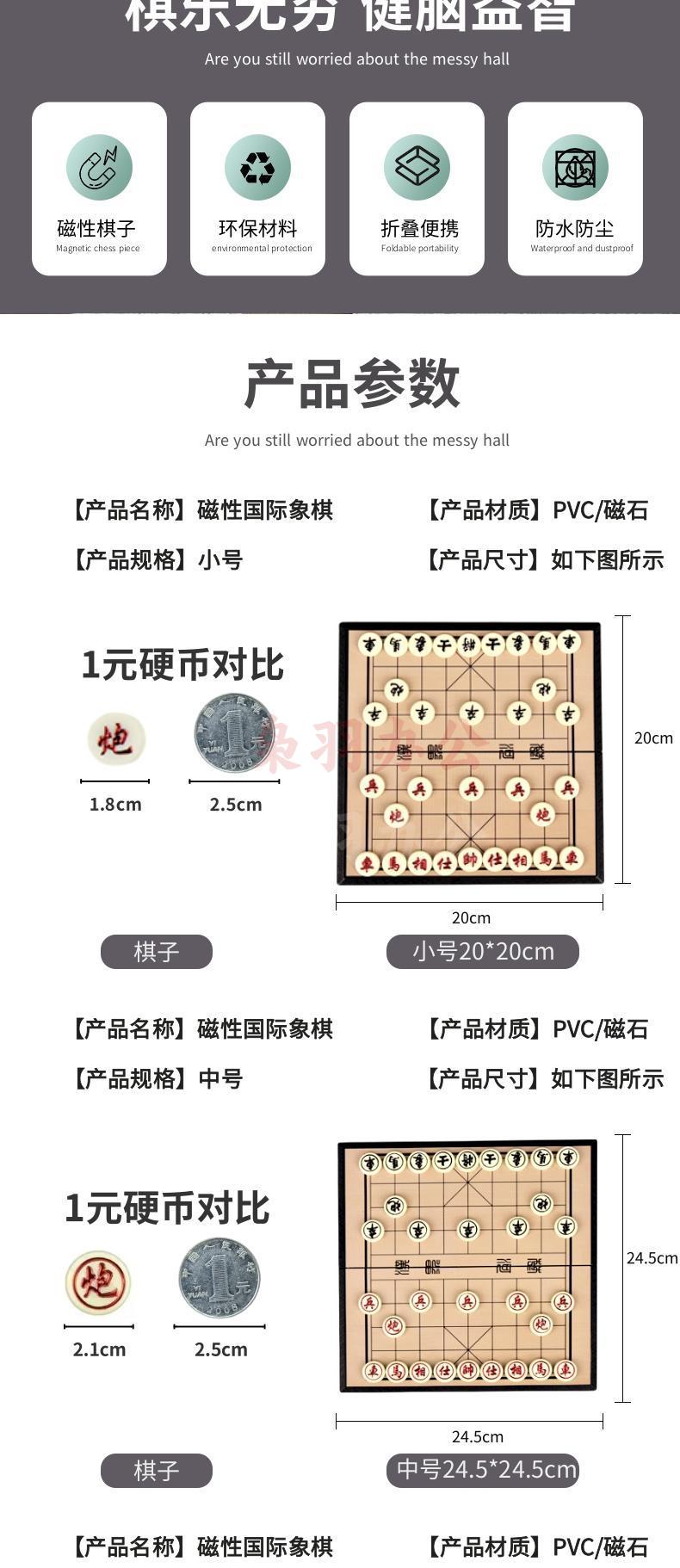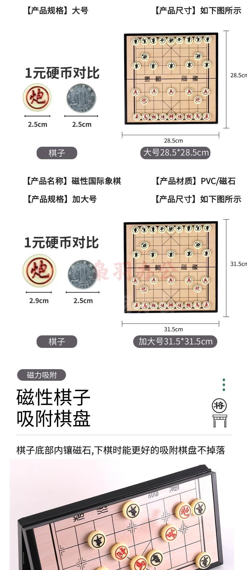 小号磁吸中国象棋折叠便携式儿童学生带棋盘专用棋子套装大号橡棋