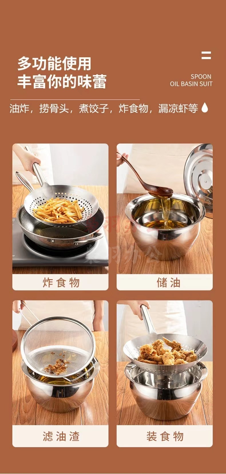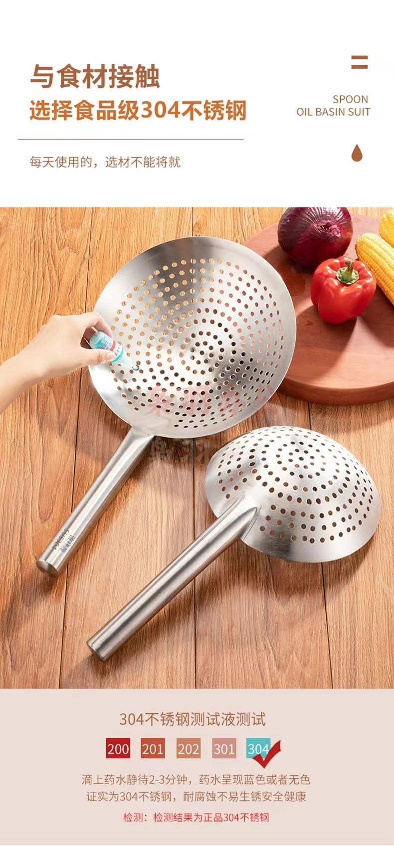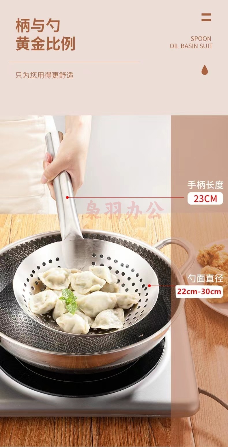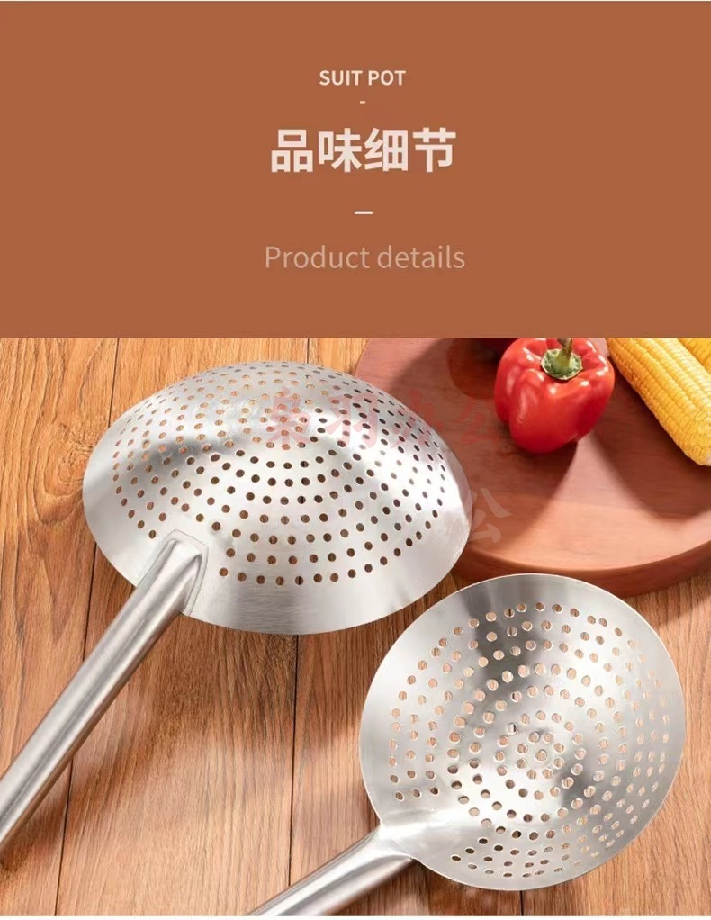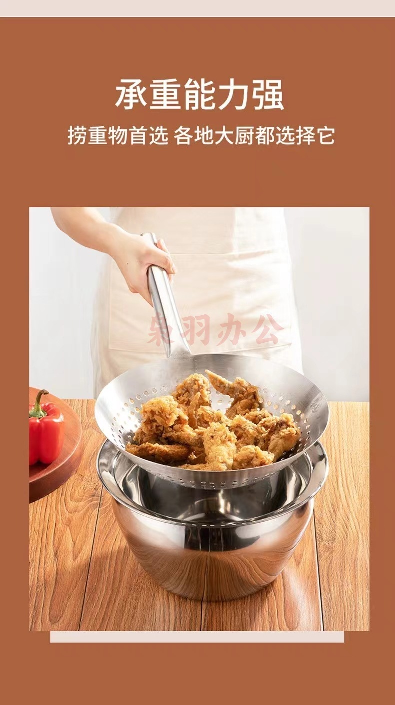 24cm漏勺304不锈钢大漏勺加厚油炸厨师商用厨房过滤304大捞勺笊篱