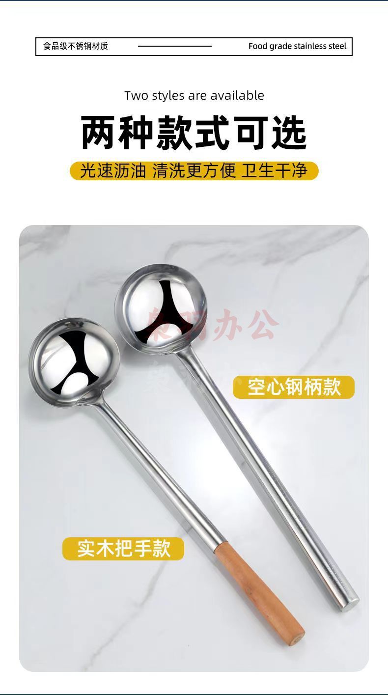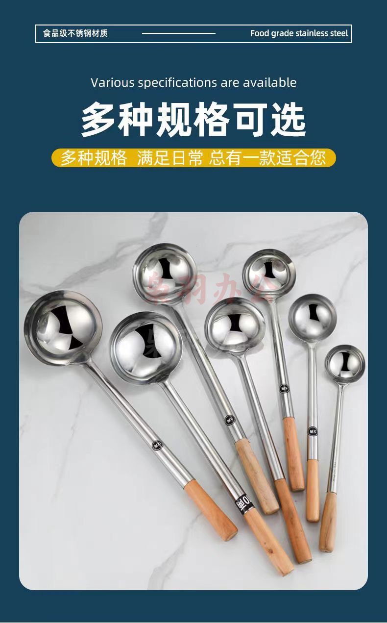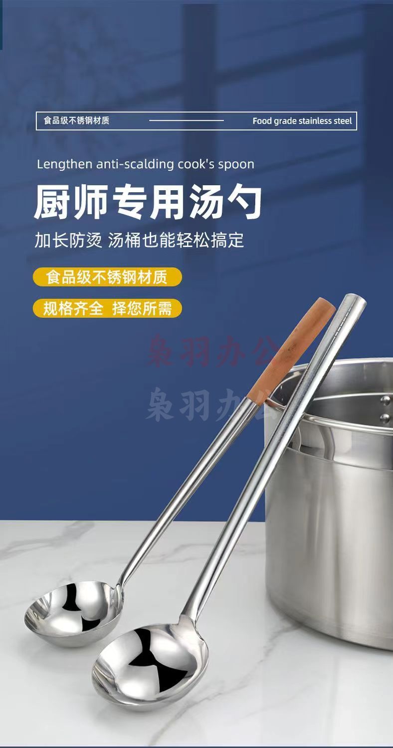 10两钢柄[亮光加厚]不锈钢炒勺厨师专用炒菜勺子家用长柄老式汤勺大号商用粥勺分菜勺