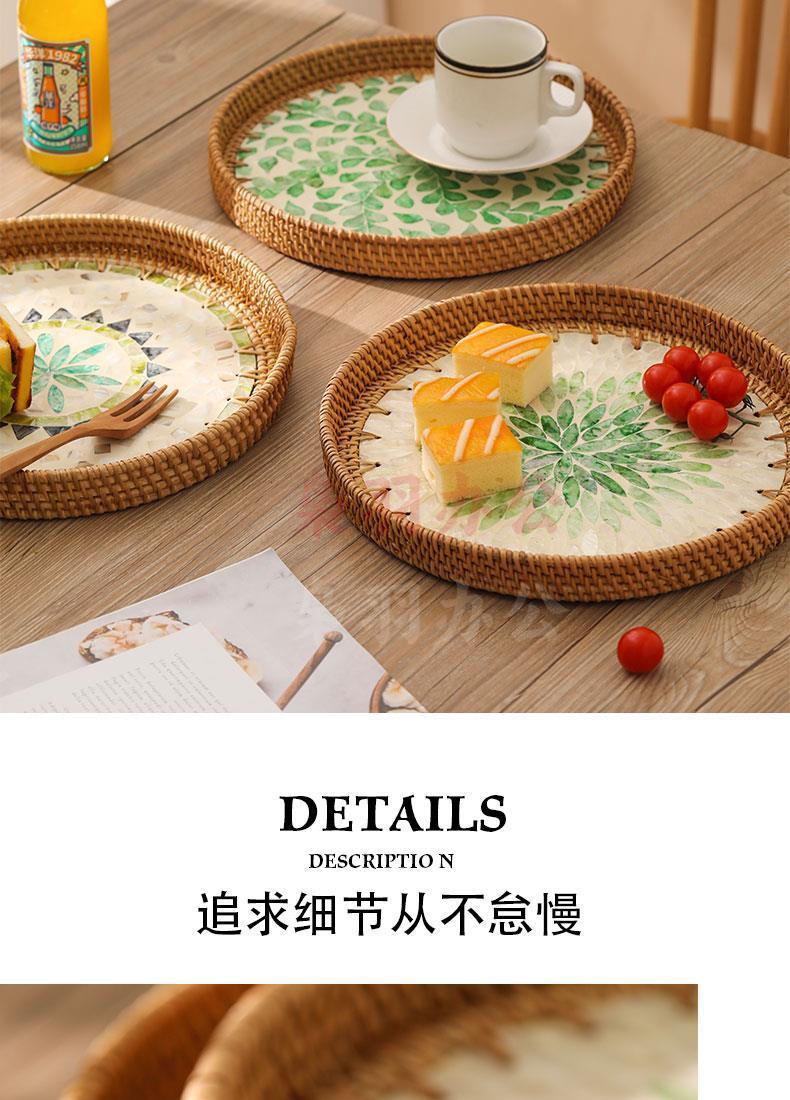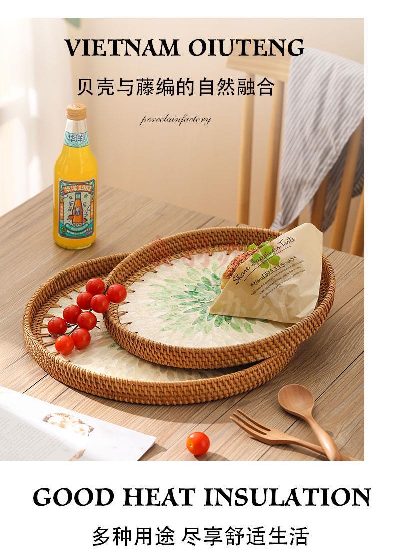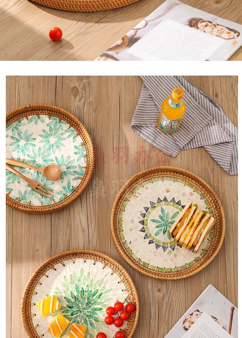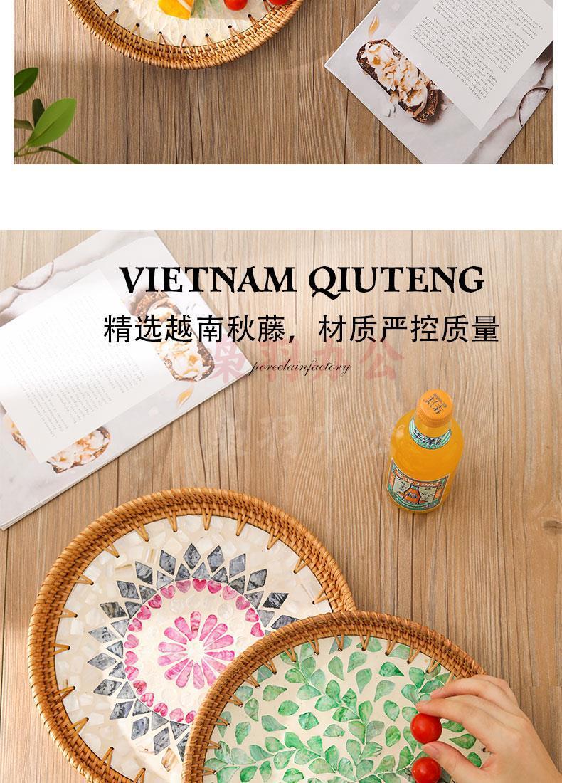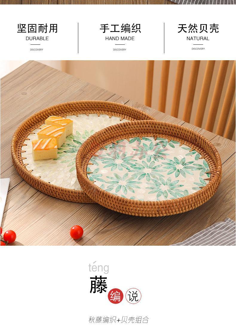 手工藤编彩贝壳托盘果盘家用创意客厅茶几收纳框水果盘面包点心盘