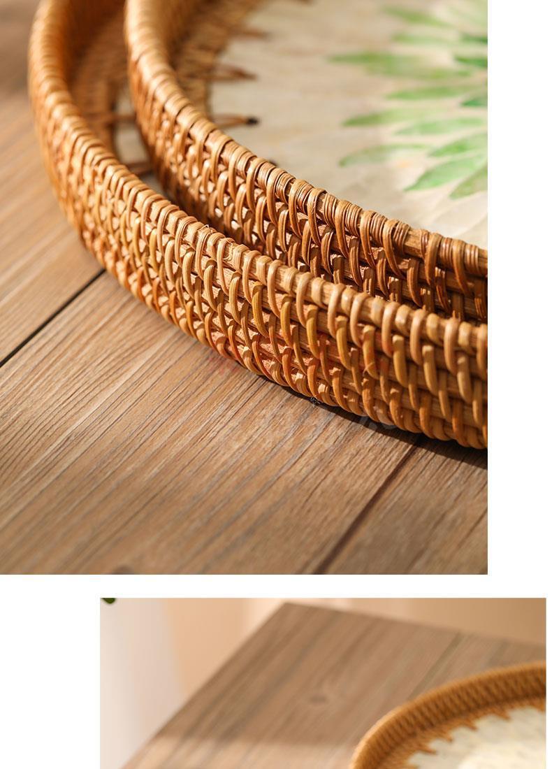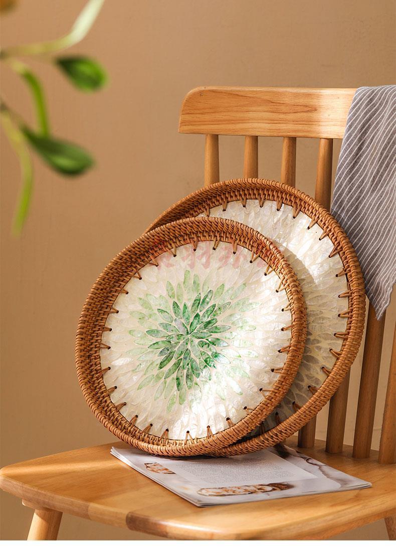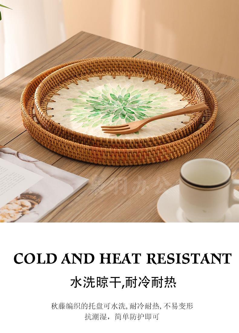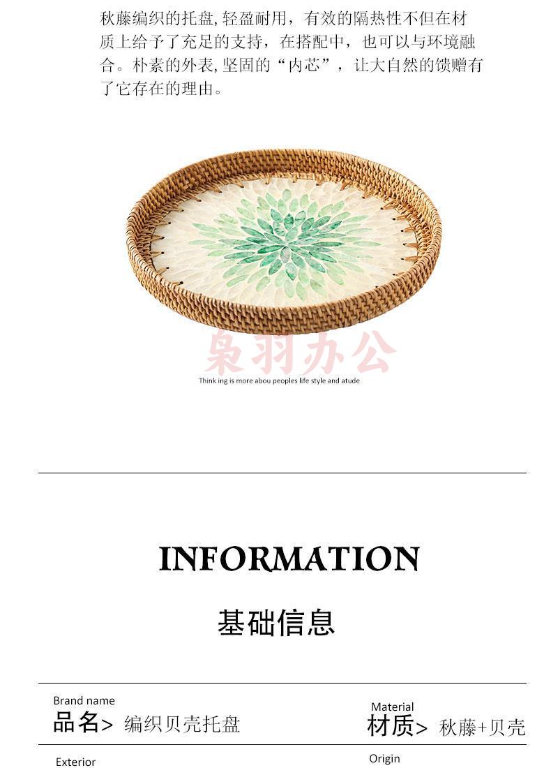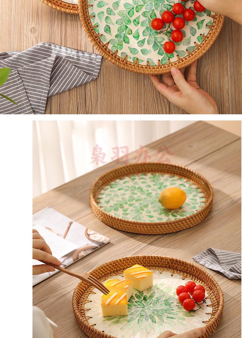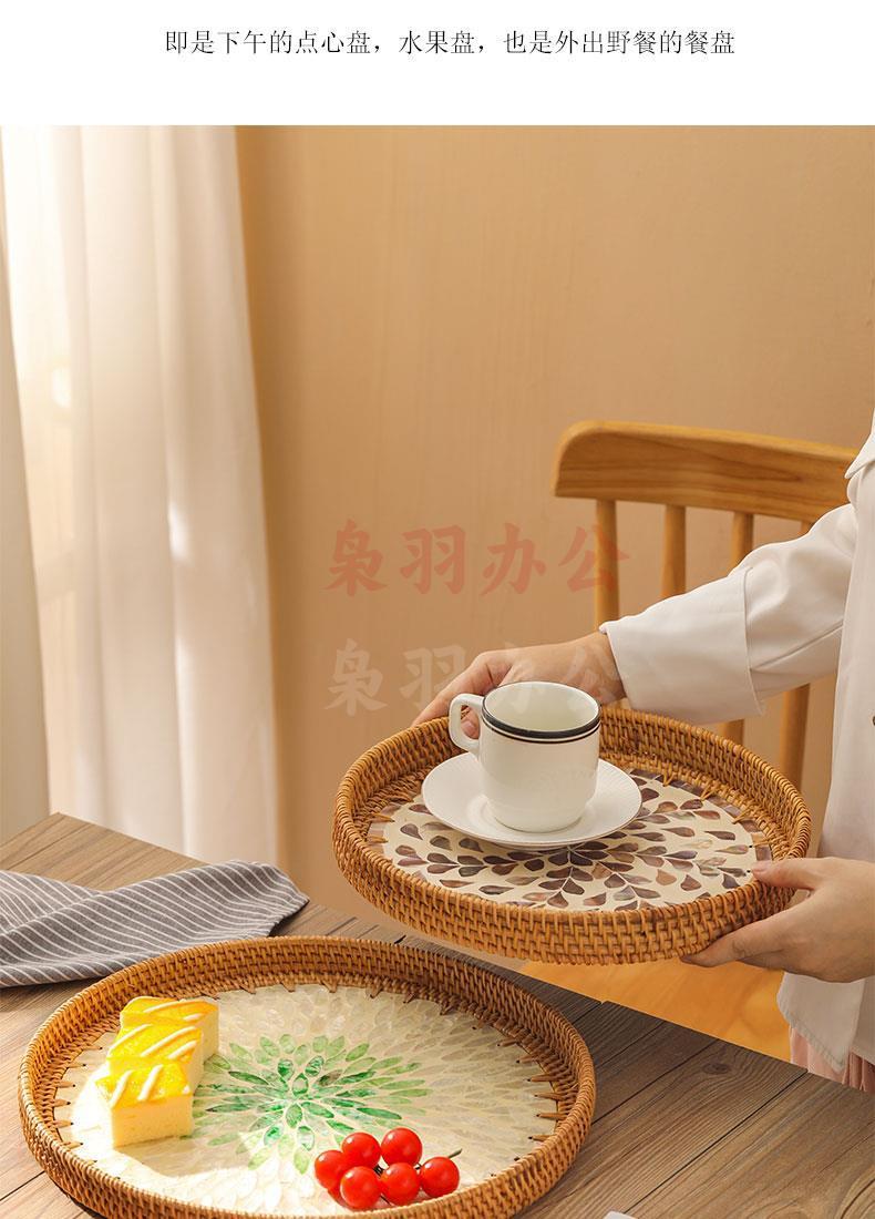 手工藤编彩贝壳托盘果盘家用创意客厅茶几收纳框水果盘面包点心盘
