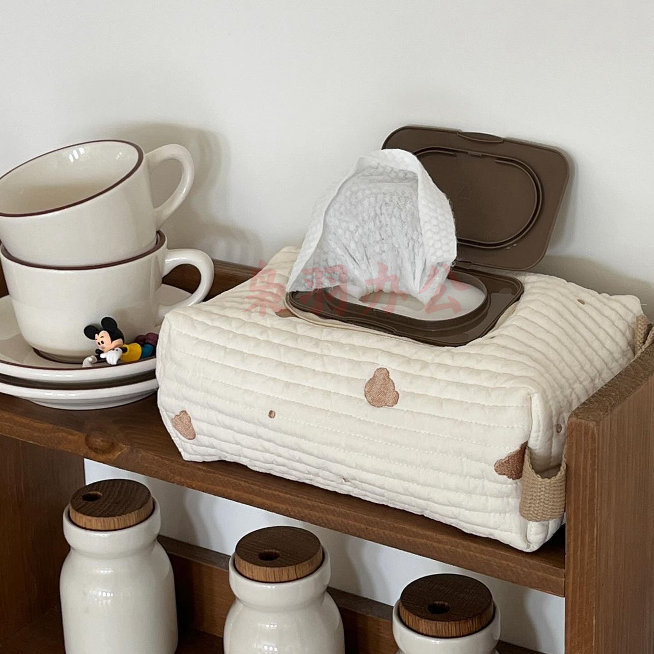 ins韩系可爱多功能宝宝推车湿巾纸收纳袋车载家居扣挂式抽纸盒卡其小熊湿巾包(不含盖子)