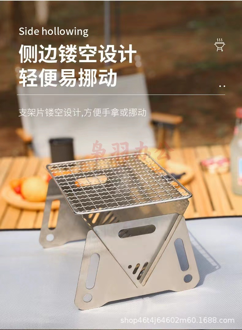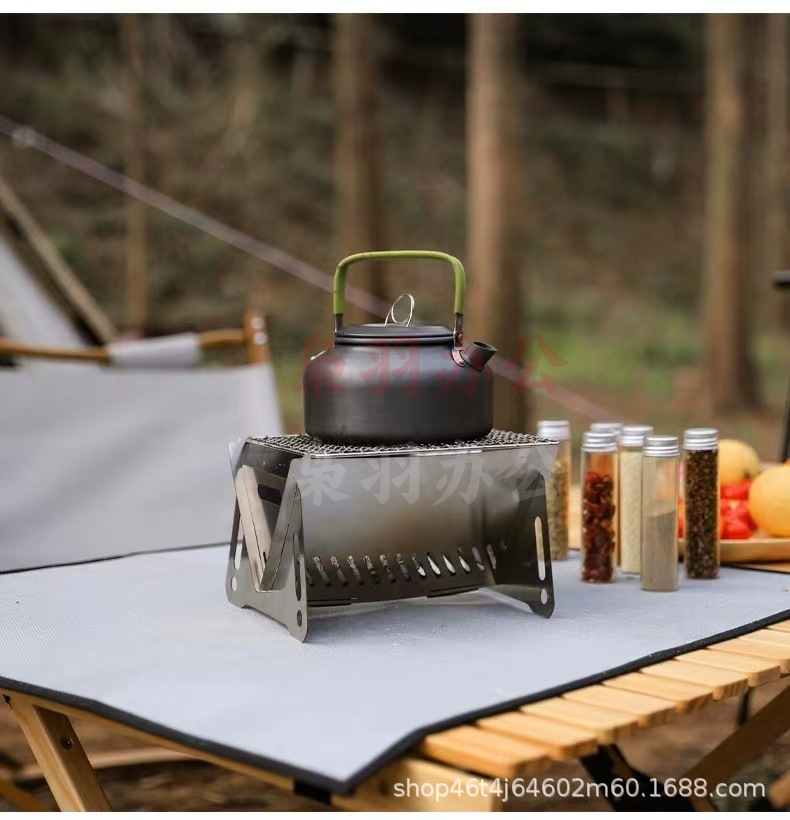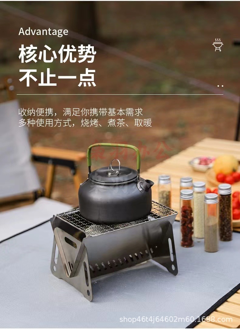 户外超轻量可折叠多用途卡片式柴火炉不锈钢烧烤炉易携带取暖围炉