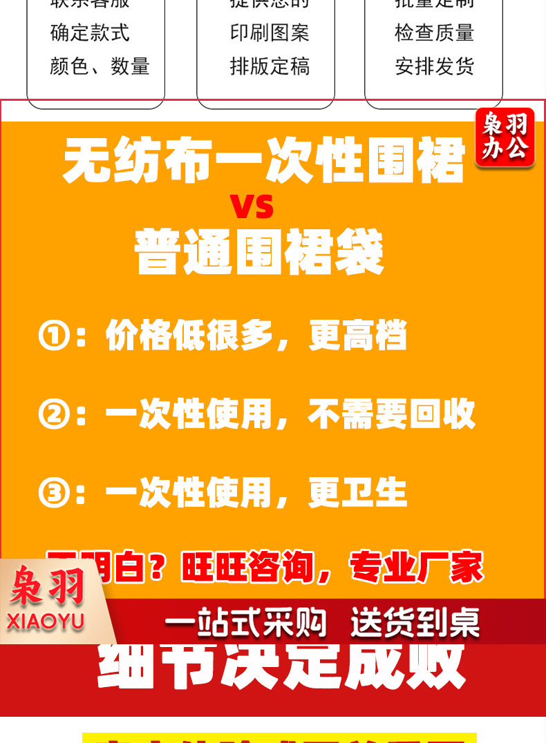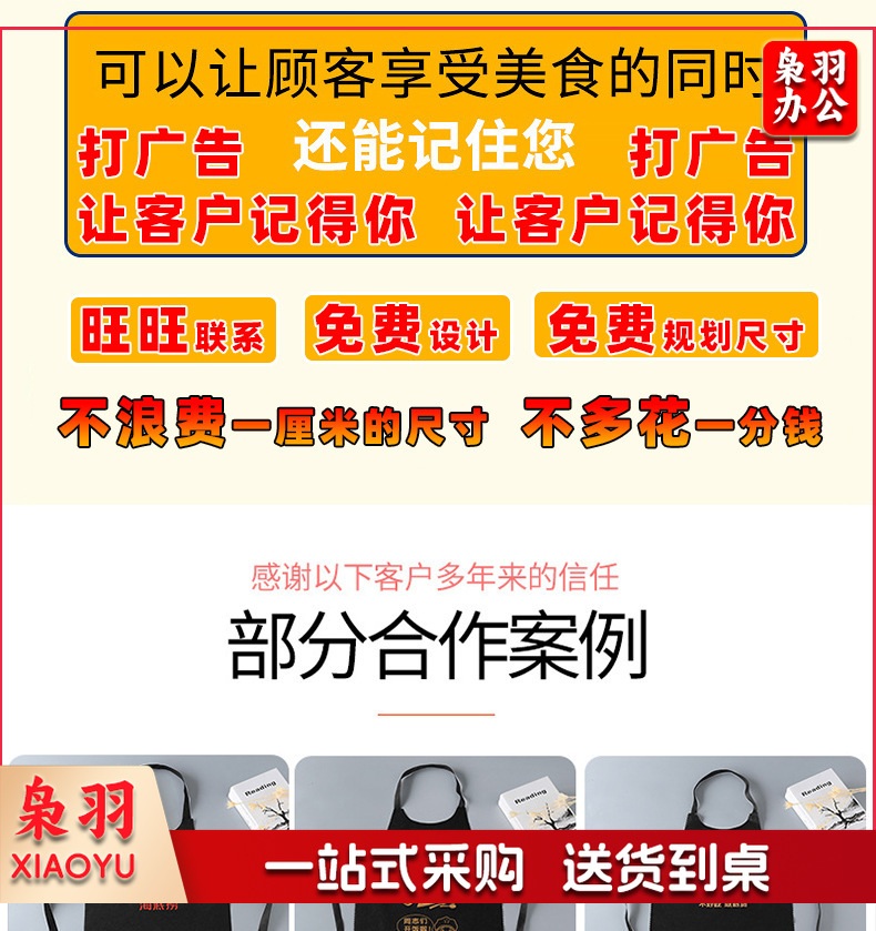 定制无纺布围裙火锅店客用一次性围兜单独包装烤肉串串围腰印logo50*65高1000个起订