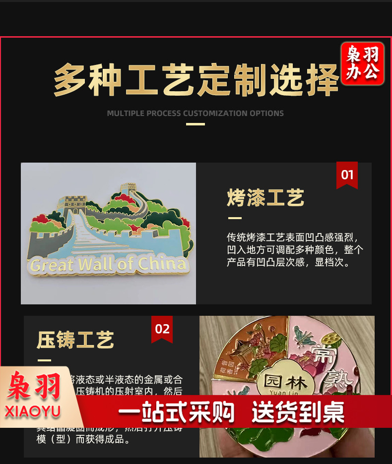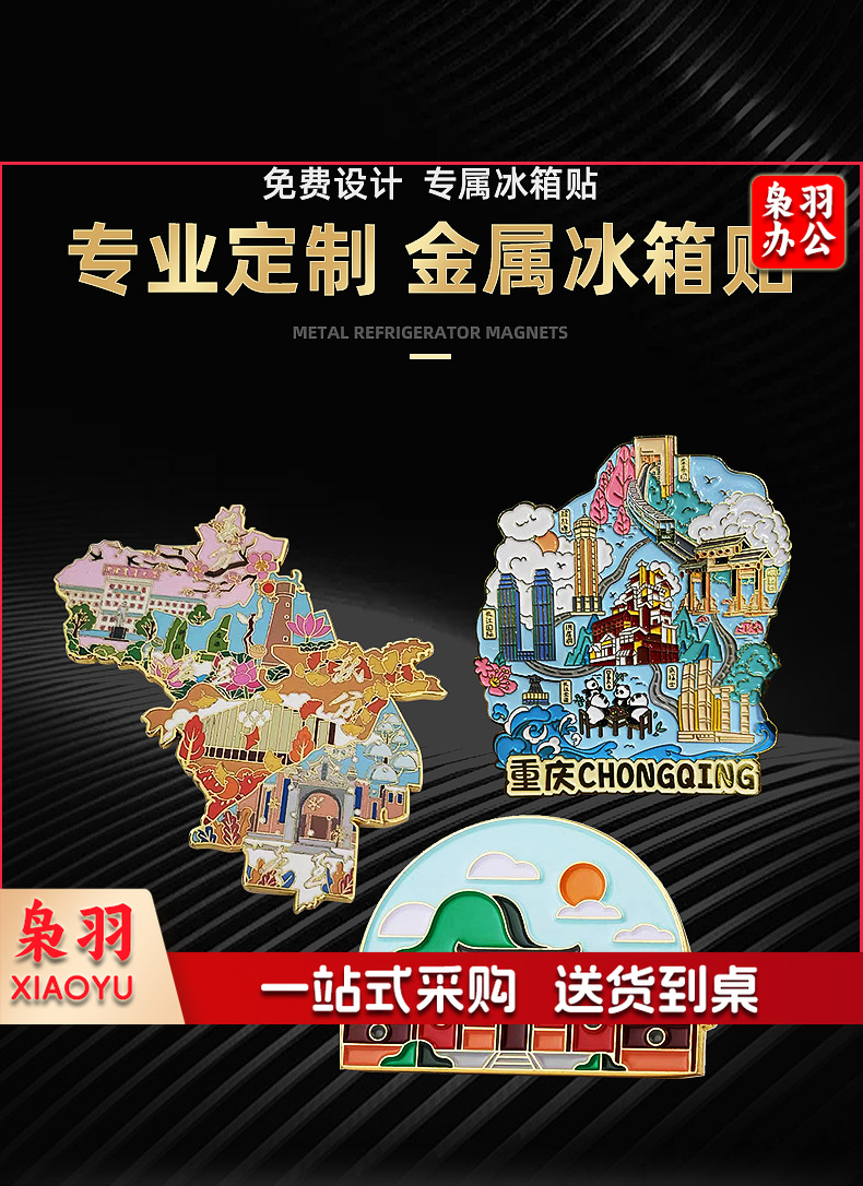 景区博物馆个性创意冰箱贴旅游城市纪念品烤漆珐琅金属冰箱贴定制