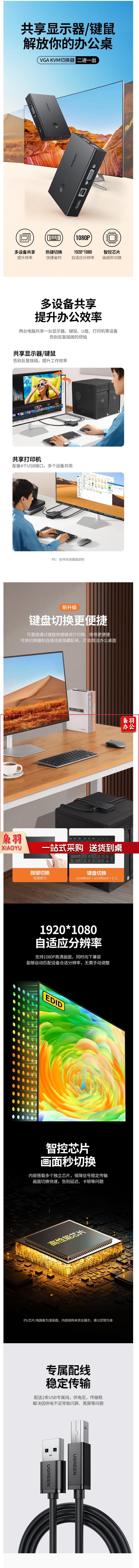 绿联 VGA切换器 KVM切换器二进一出 CM572(90490)