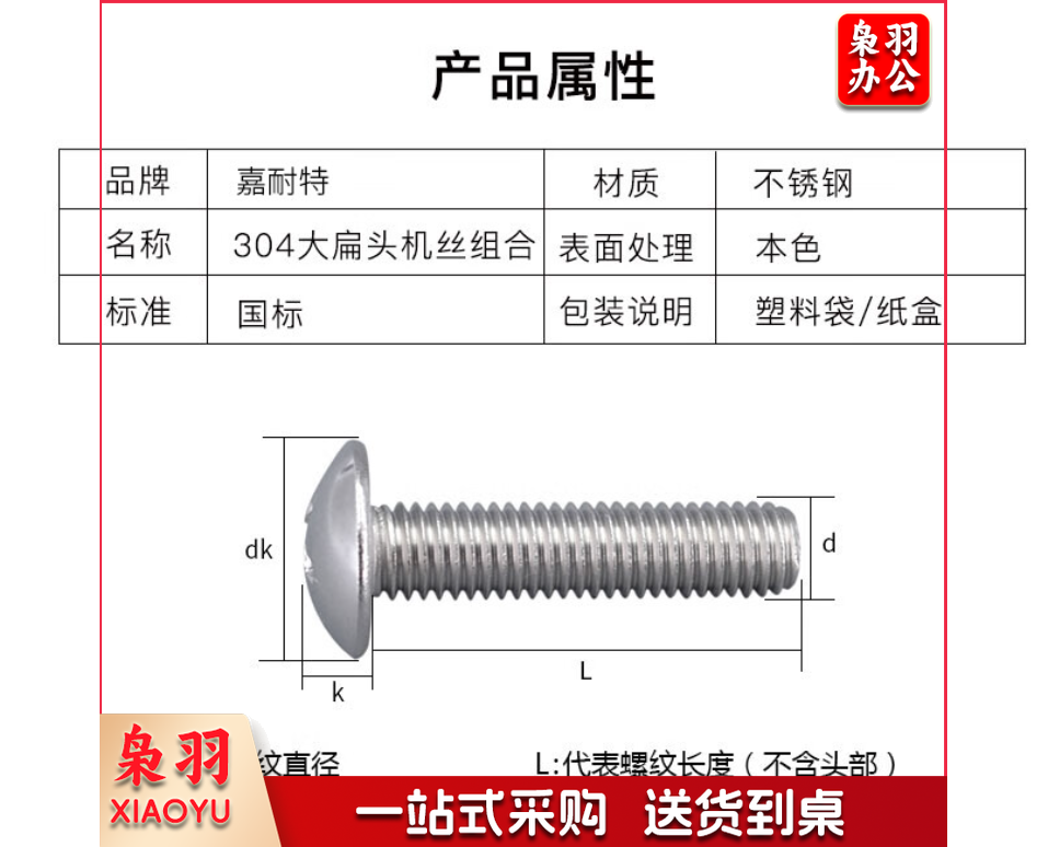 大扁头十字满扣螺丝 (不锈钢)M8*75mm