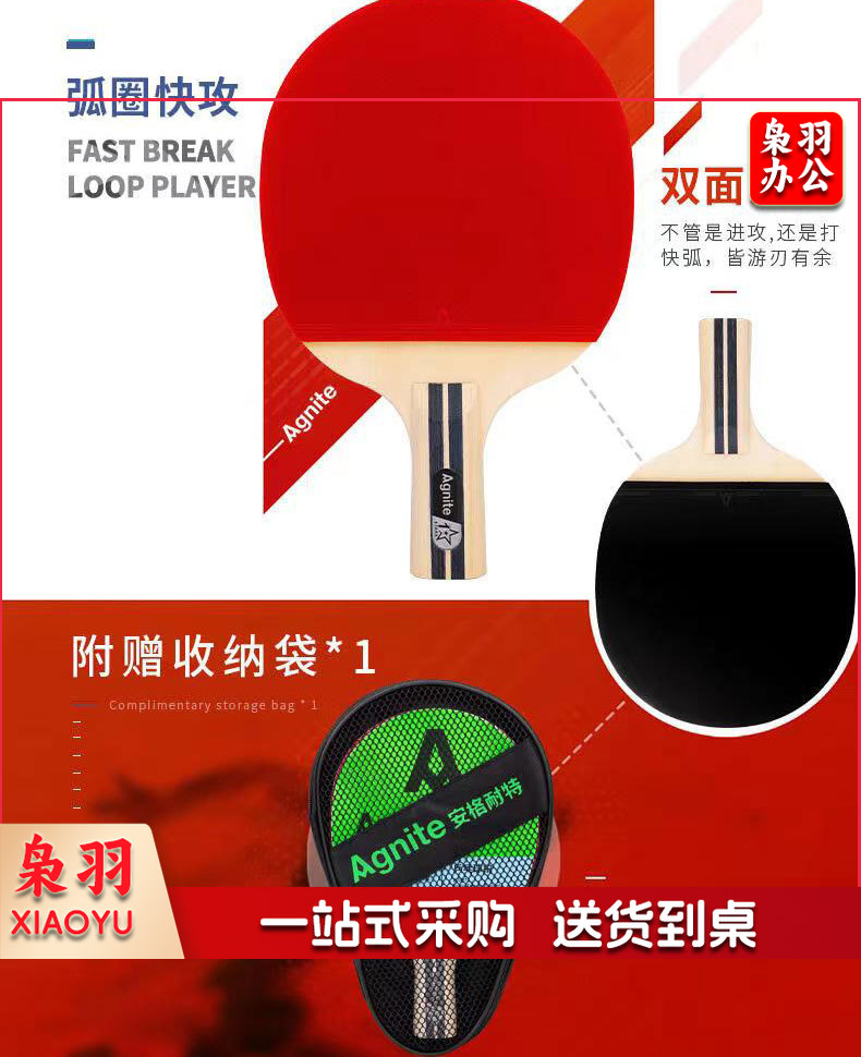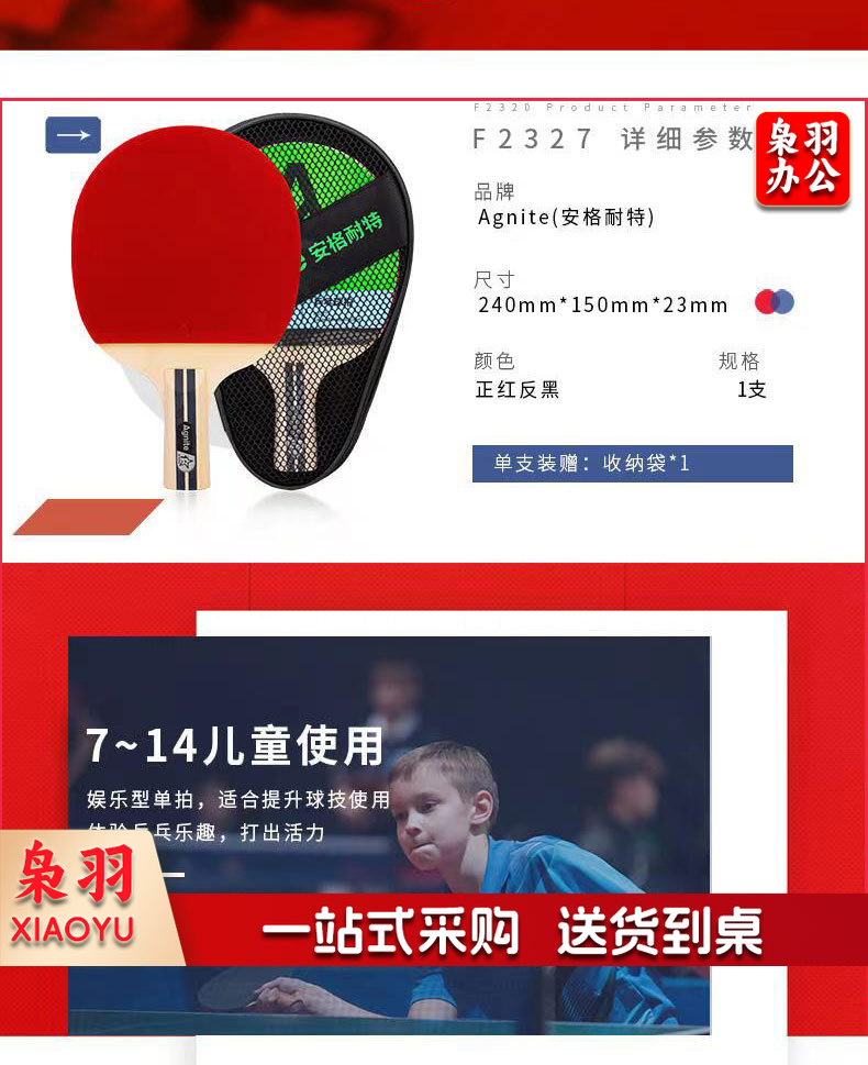 安格耐特F2327一星乒乓球拍(红+黑)(直拍)(单支装)