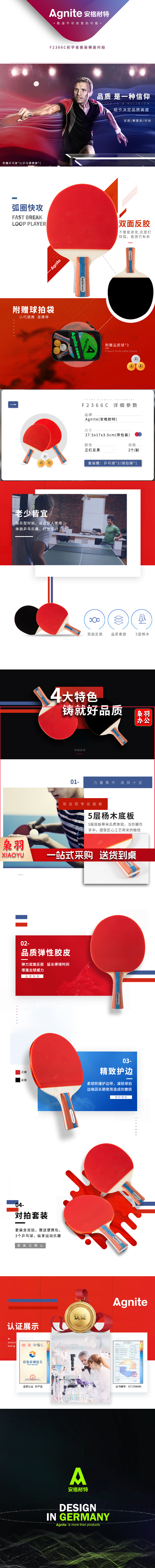 安格耐特F2366C乒乓球拍横直对拍(正红反黑)(2支/副)(带三球)