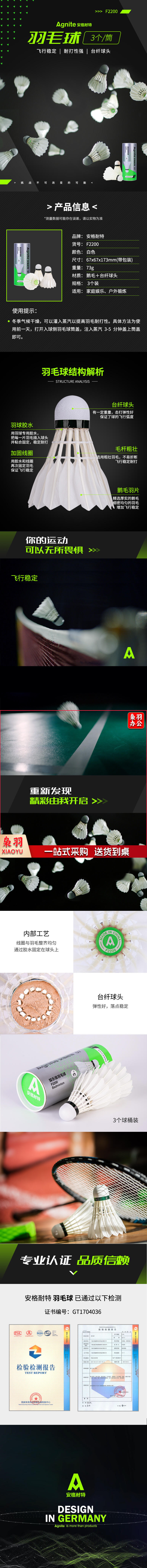 安格耐特F2200羽毛球(白色)(3个/筒)