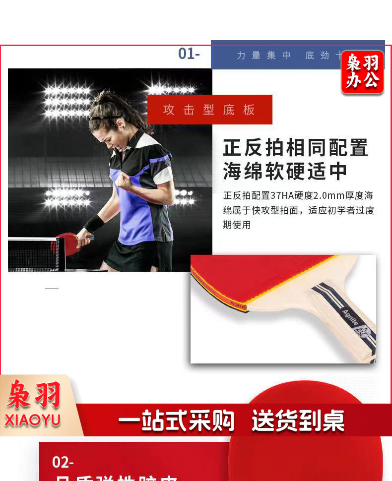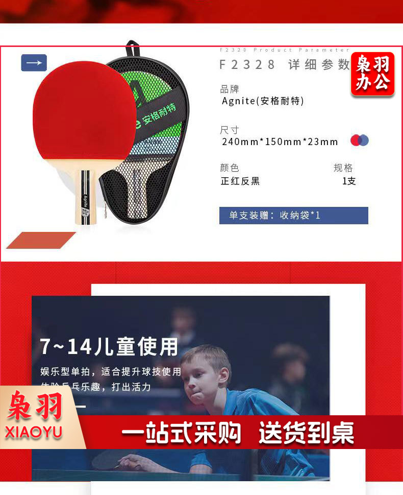 安格耐特F2328二星乒乓球拍(红+黑)(直拍)(单支装)