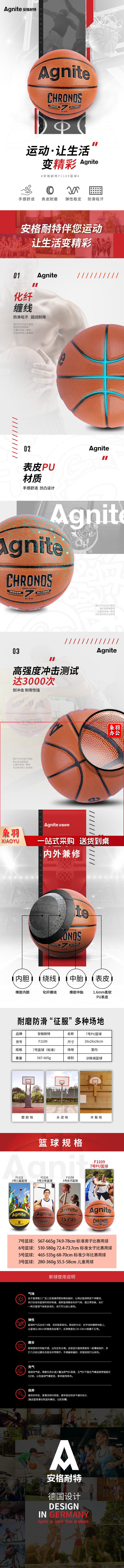 安格耐特F1109 7号PU篮球(橙色)