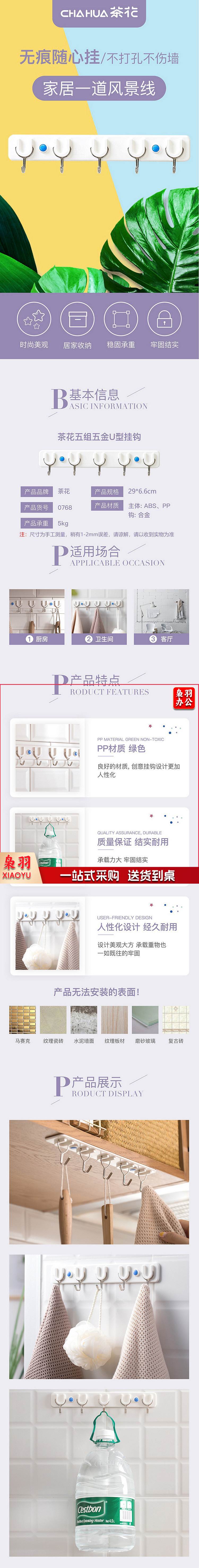 茶花0768五组五金U型挂钩白色29*6*2.2cm93g36个/箱(个)