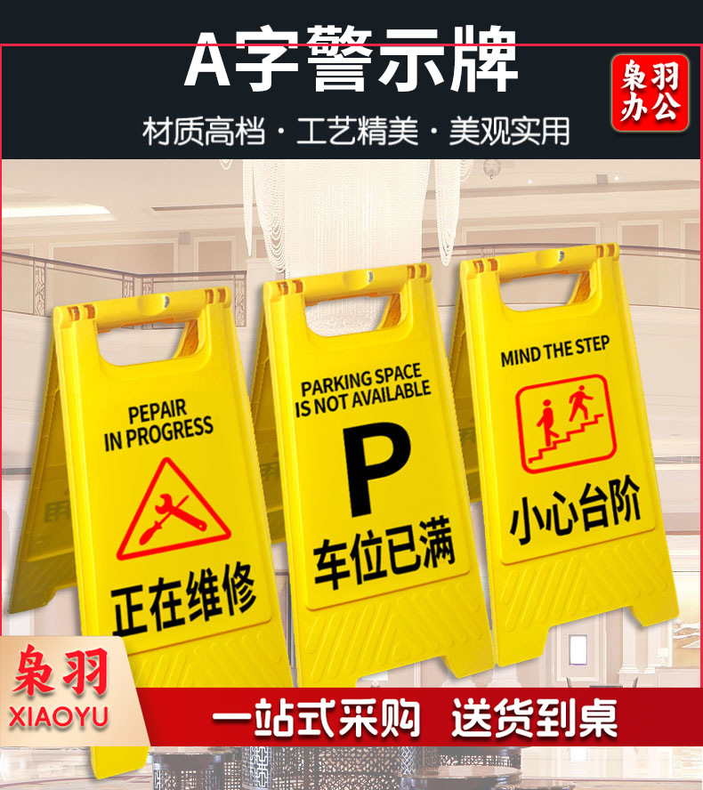 A字牌小心地滑注意安全禁止停车指示牌标识牌广告牌交通标识警示A字牌正在清洁*600*210*300