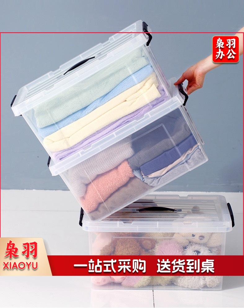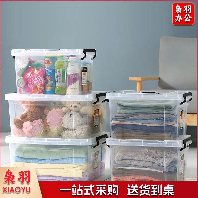 pp食品级加厚手提大号保鲜盒 塑料 透明长方形冰箱密封收纳盒带盖(高透明款003:31*21.5*10.5)2个起拍