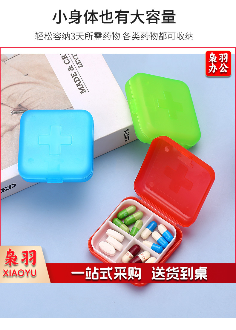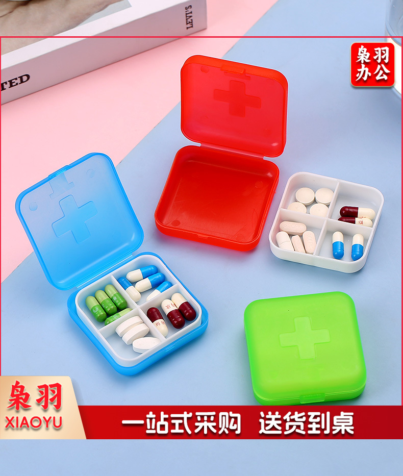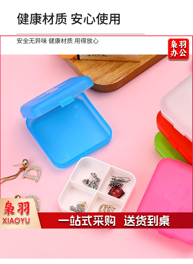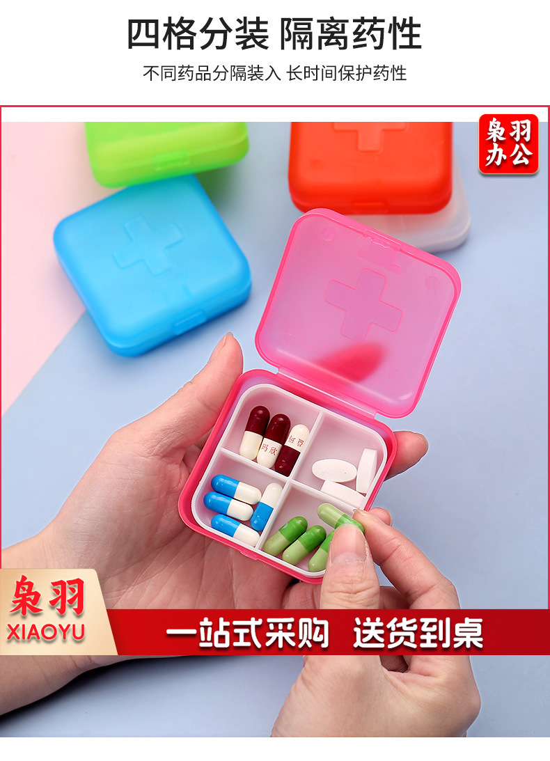 十字四格迷你方形小药盒便携随身塑料盒子分格分藥盒首饰收纳盒