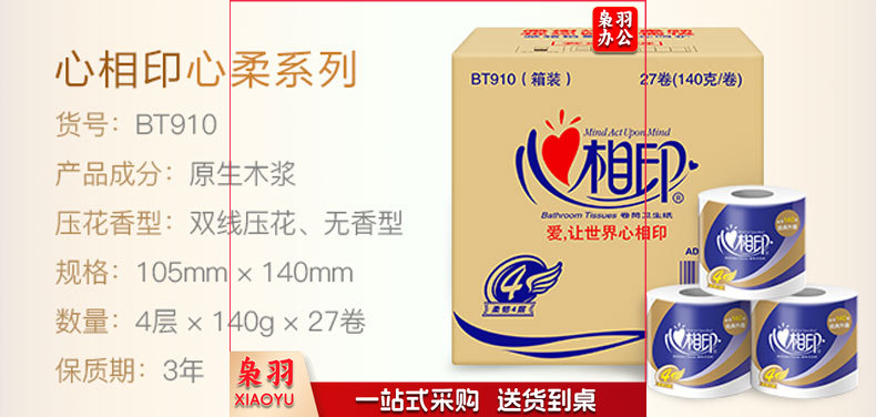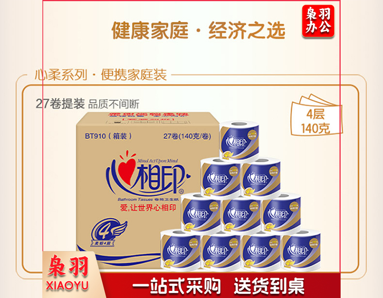 心相印卷纸卫生纸 心柔系列卷纸4层 140g*10卷 10卷/提