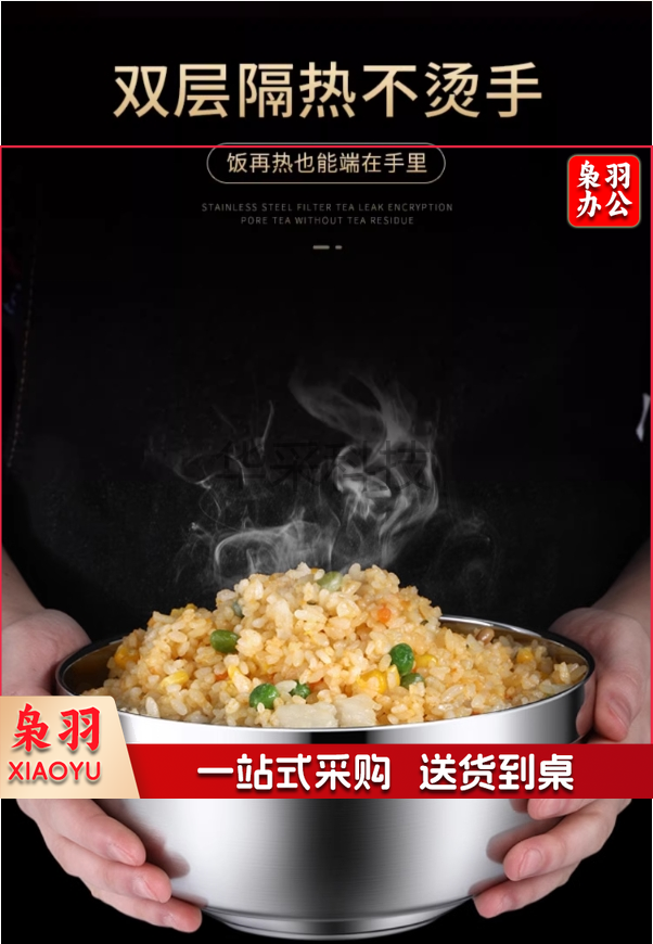 不锈钢304食品级 米饭碗 隔热碗汤面碗 直径13cm