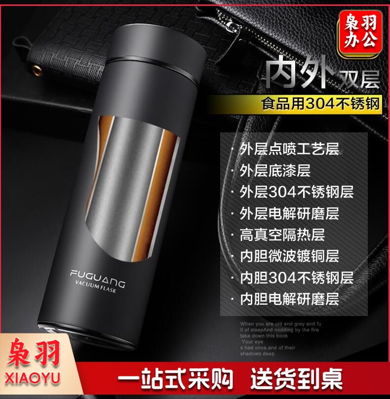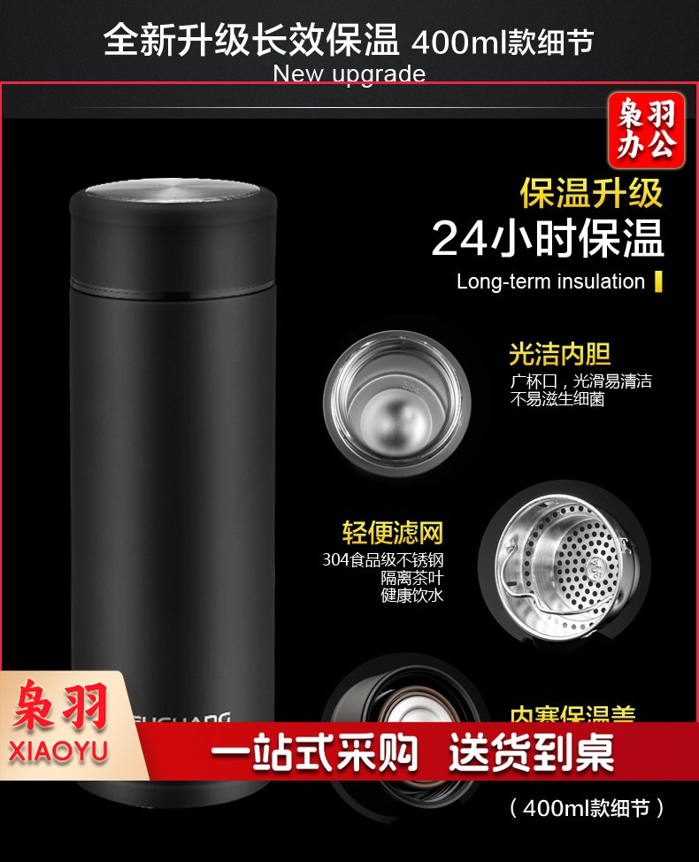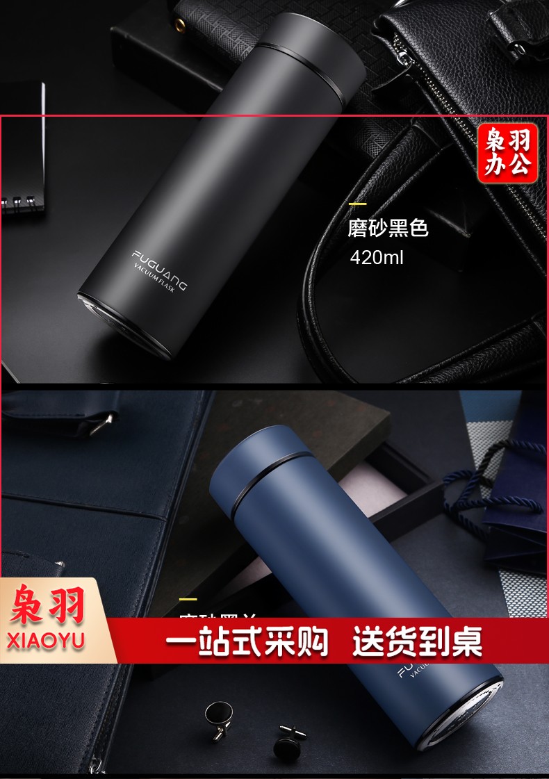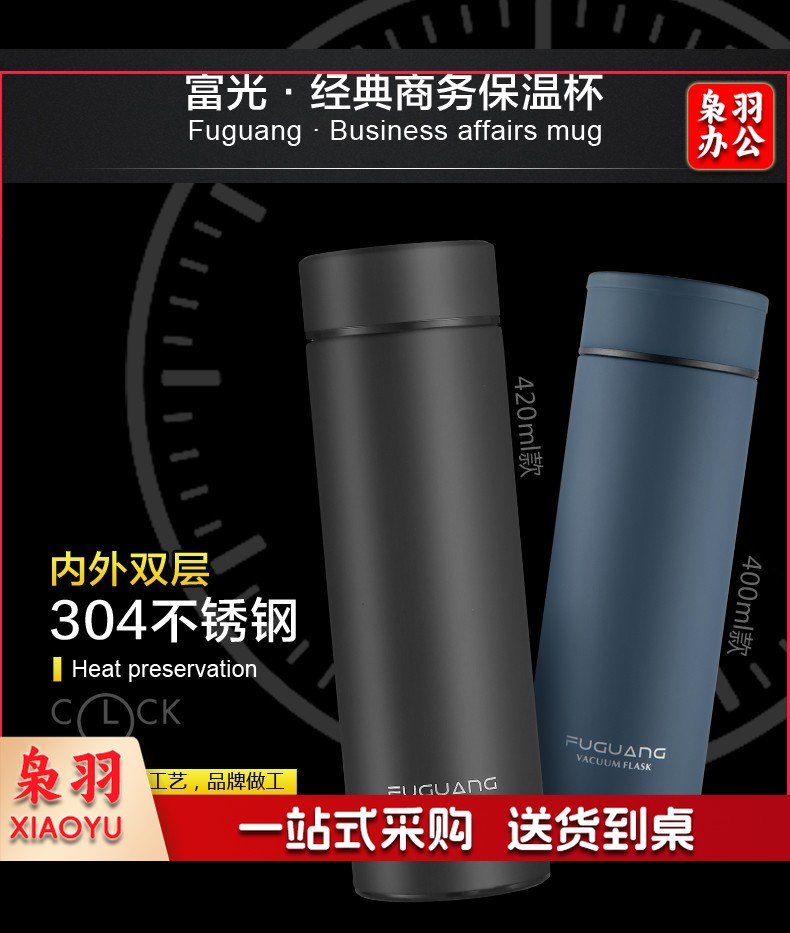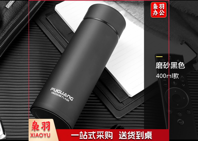 富光 保温杯304不锈钢男女士商务车载泡茶学生便携礼品水杯子定制刻字 磨砂黑色420ml
