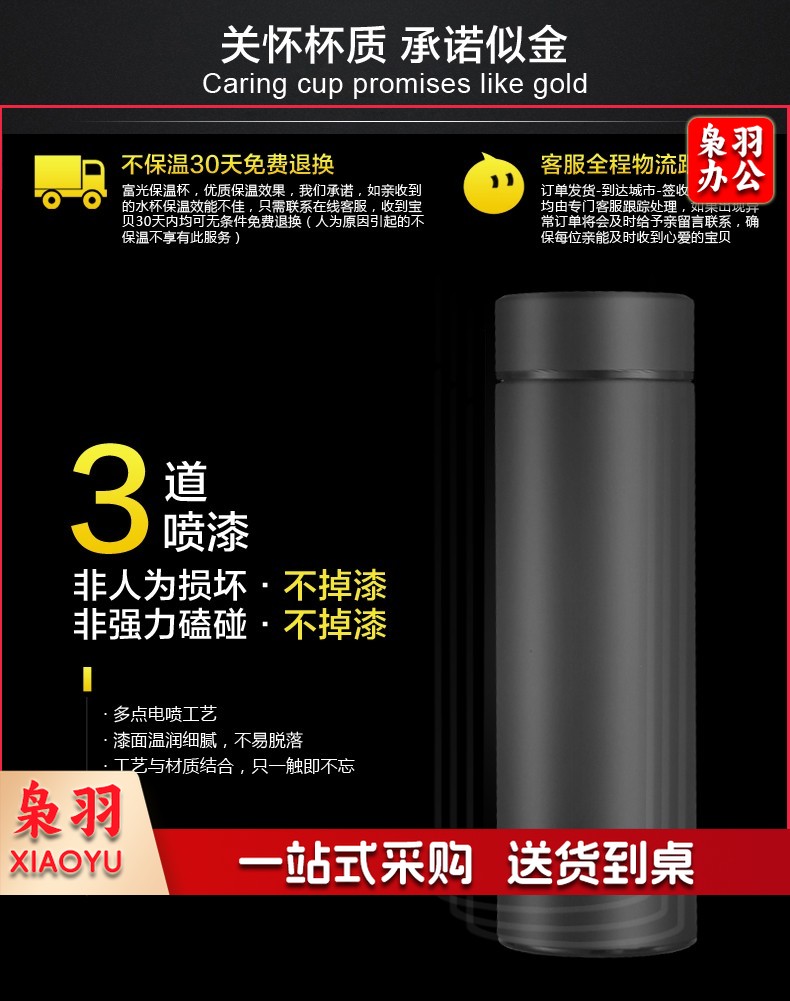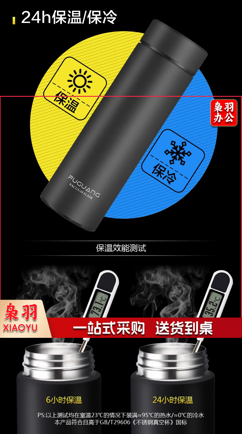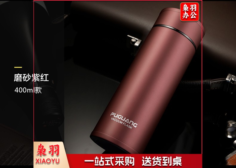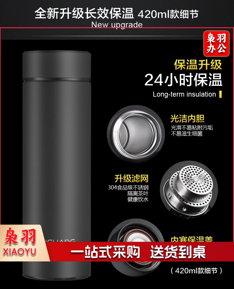 富光 保温杯304不锈钢男女士商务车载泡茶学生便携礼品水杯子定制刻字 磨砂黑色420ml