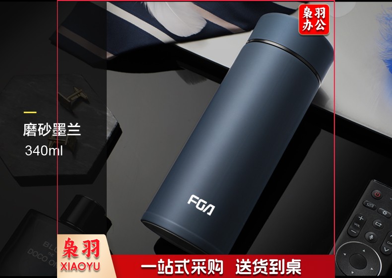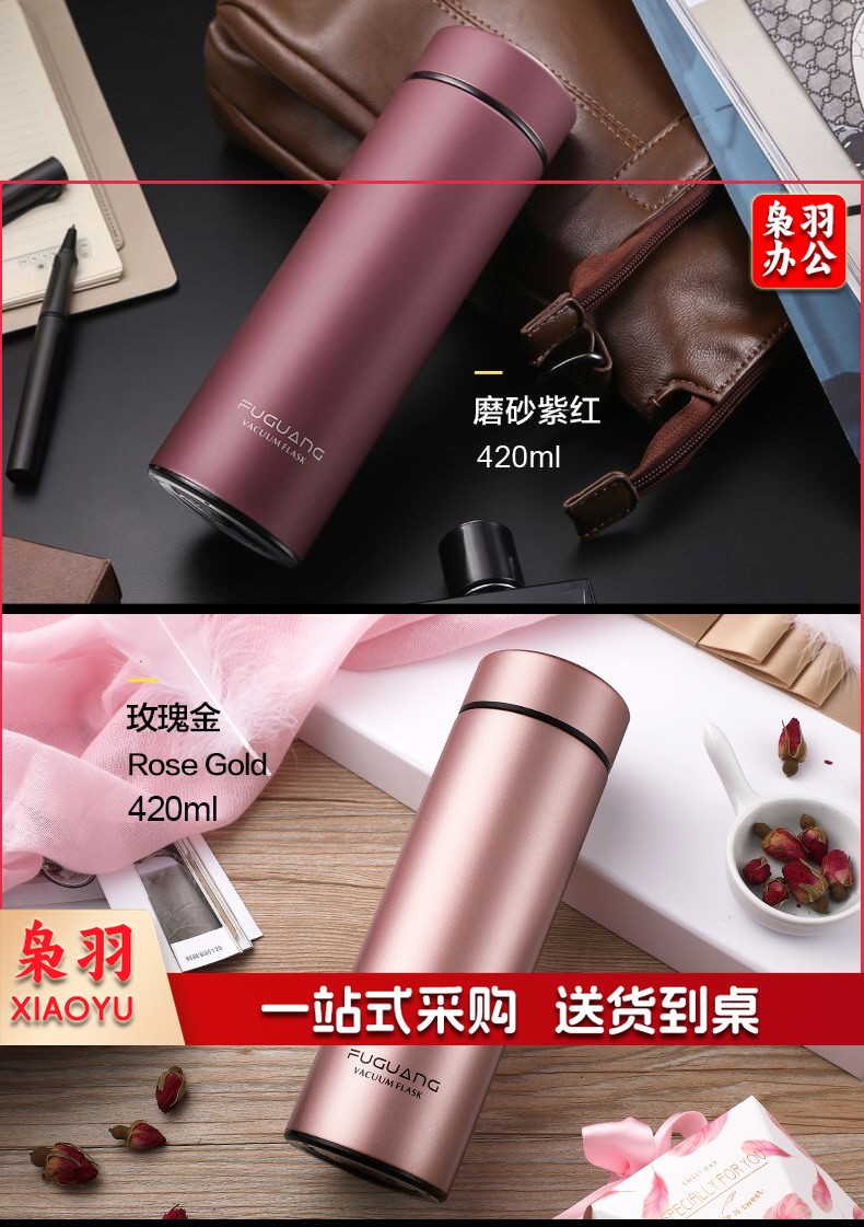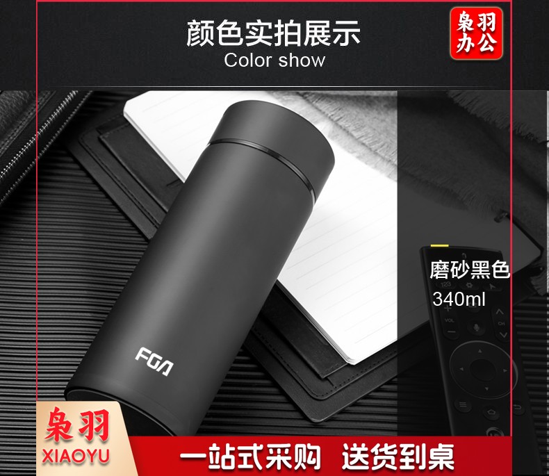 富光 保温杯304不锈钢男女士商务车载泡茶学生便携礼品水杯子磨砂黑色420ml