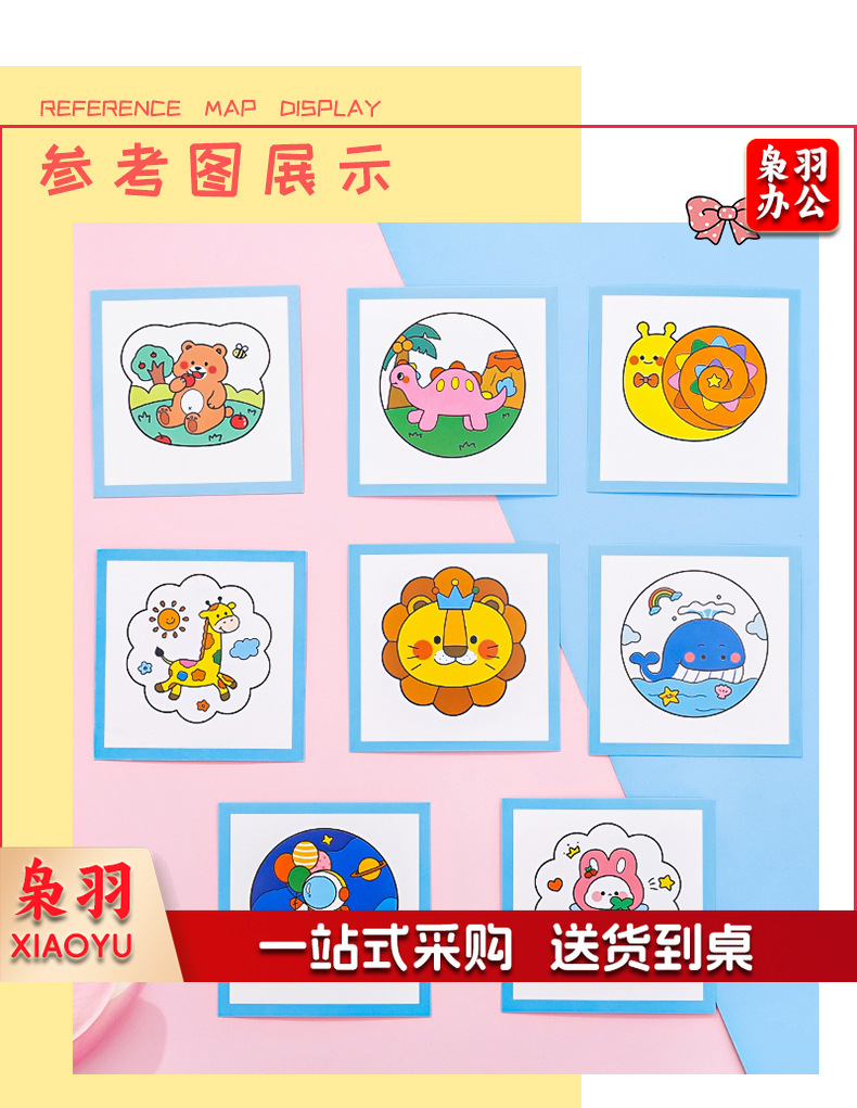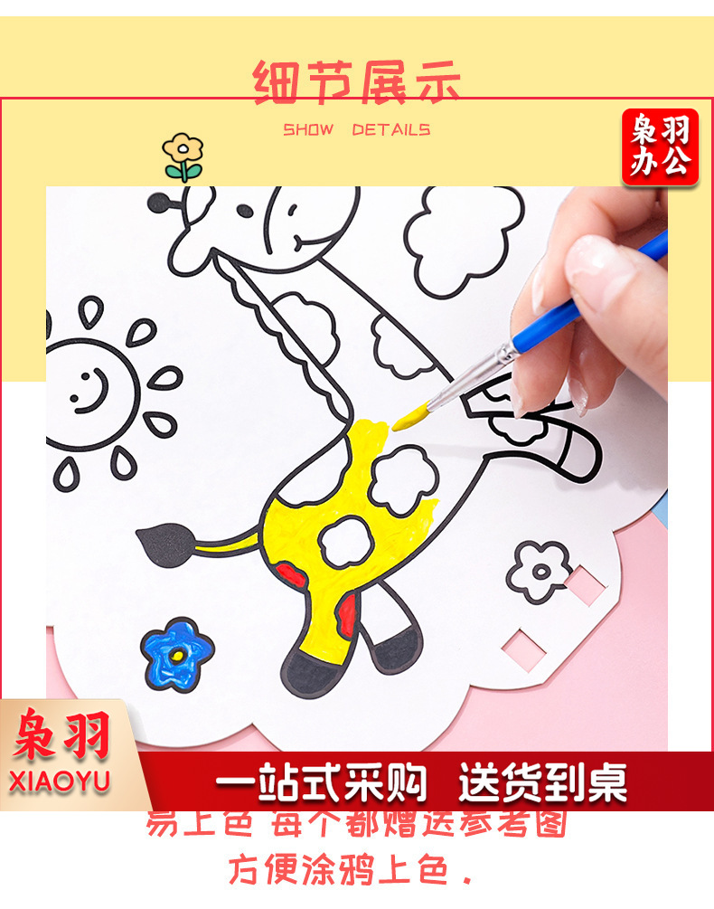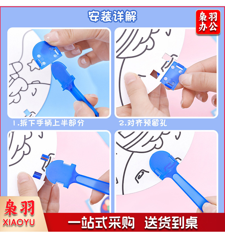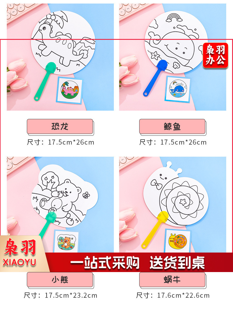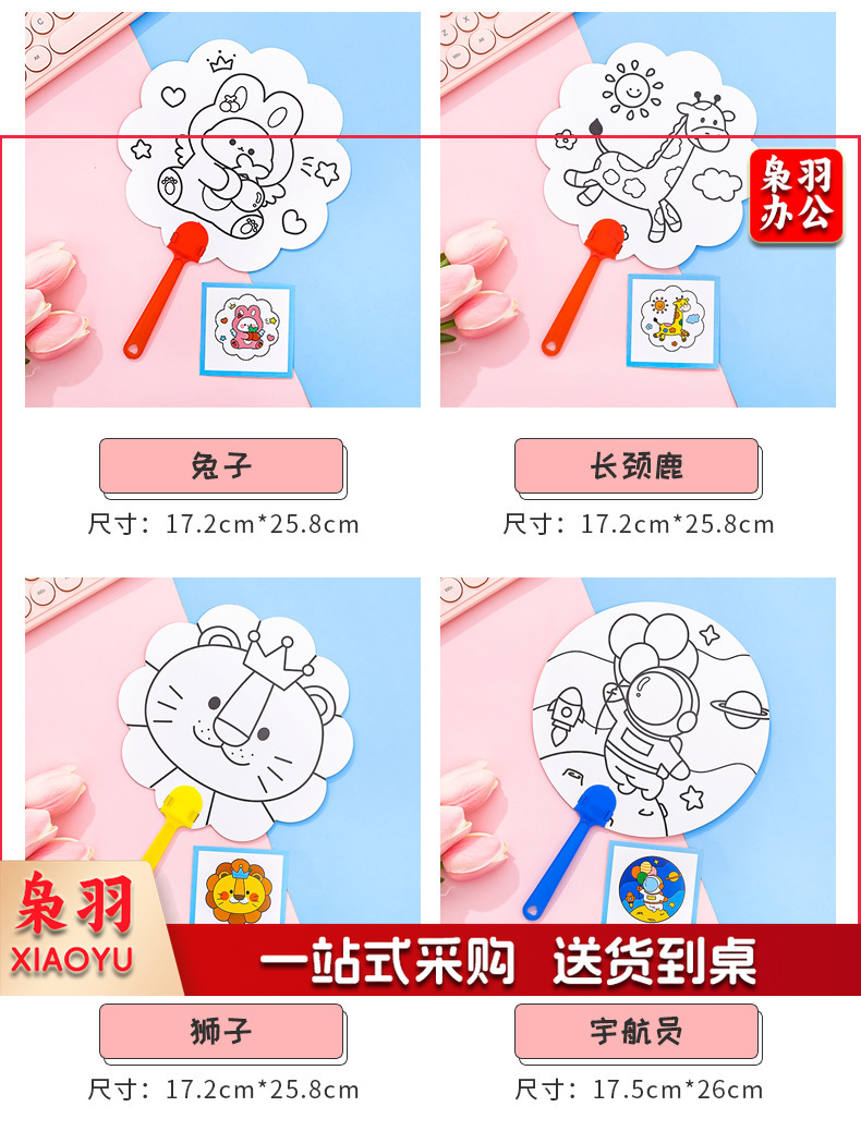 卡通DIY涂鸦扇子小学生手绘填色空白小圆扇幼儿园儿童益智小扇子