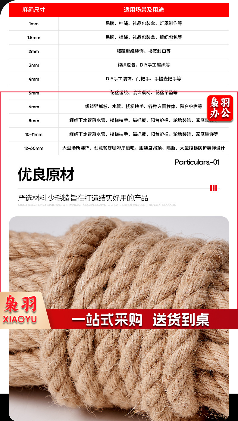 黄麻绳黄色细麻绳捆绑绳猫爬架diy材料绳子手工编织麻绳(土黄色*直径30mm50米)