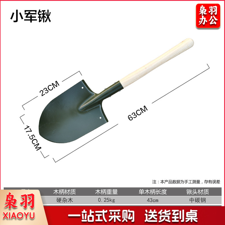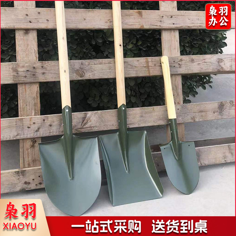 工兵铲抗洪救援防汛碳钢锹木柄铁锹雪铲 63CM小军锹-铁锹(尖头)
