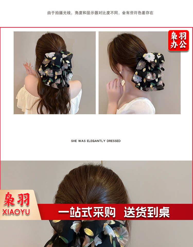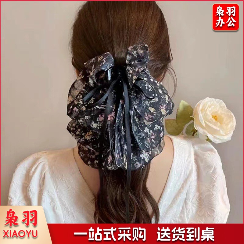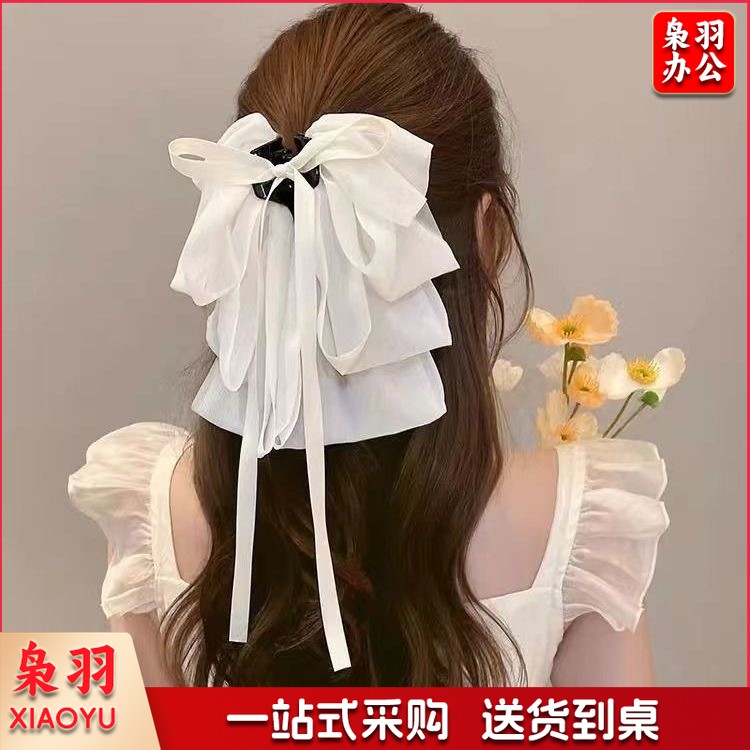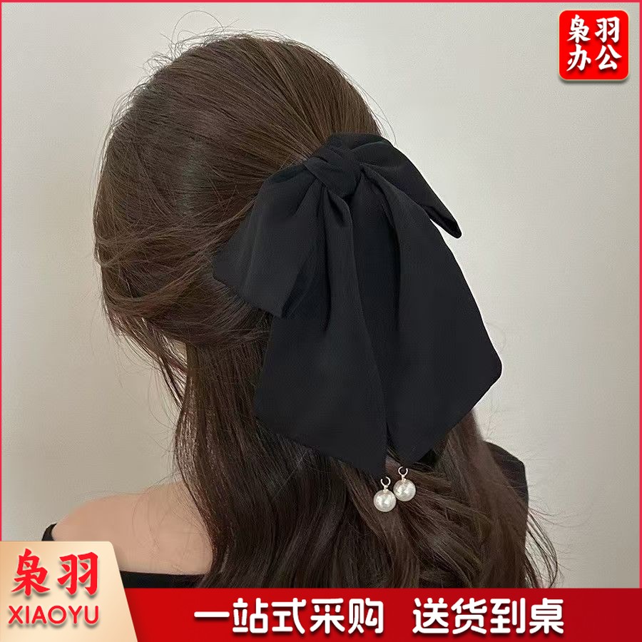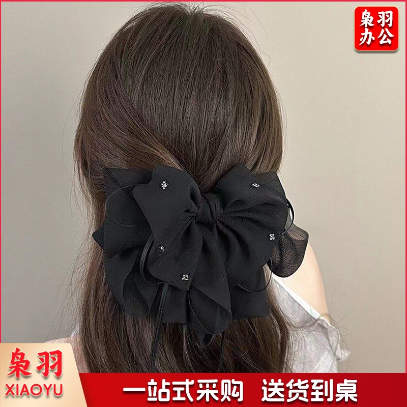 高级感蝴蝶结飘带抓夹女波点马尾夹子发卡温柔气质半扎发夹鲨鱼夹(黑色蝴蝶结)