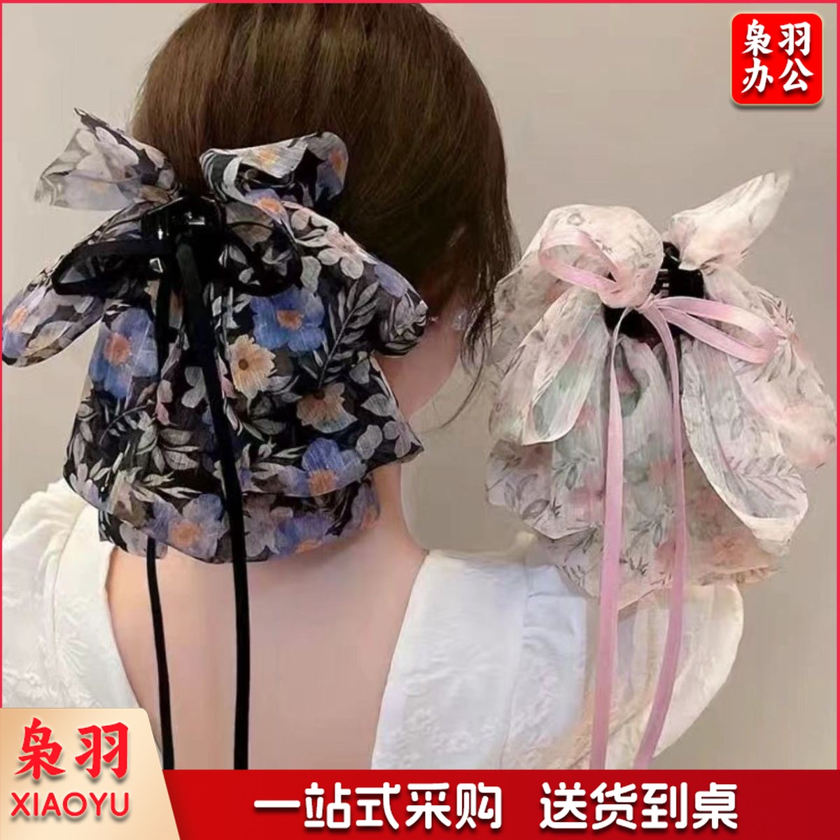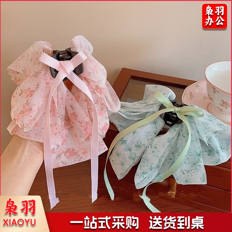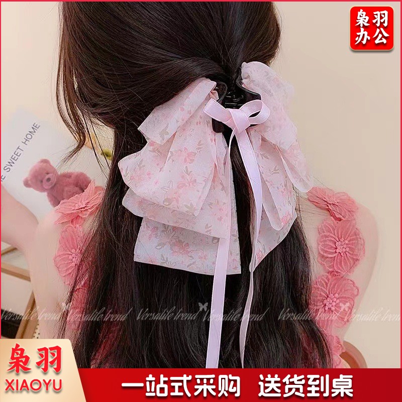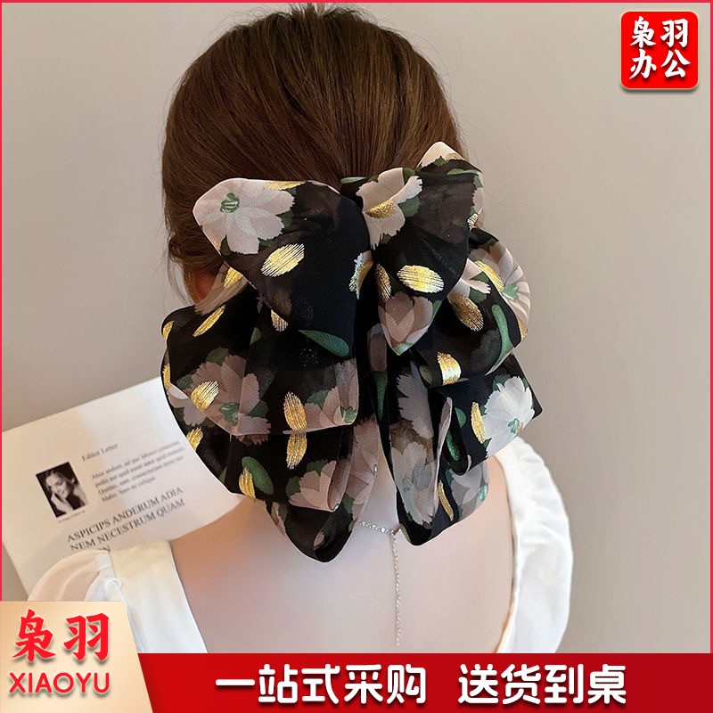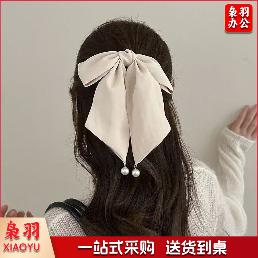 高级感蝴蝶结飘带抓夹女波点马尾夹子发卡温柔气质半扎发夹鲨鱼夹(黑色蝴蝶结)