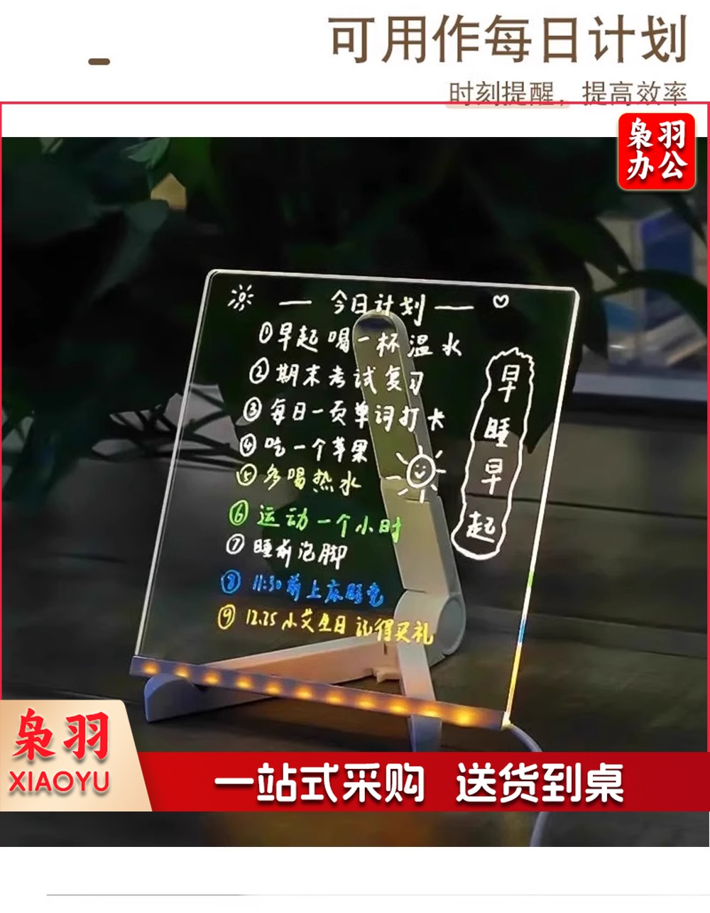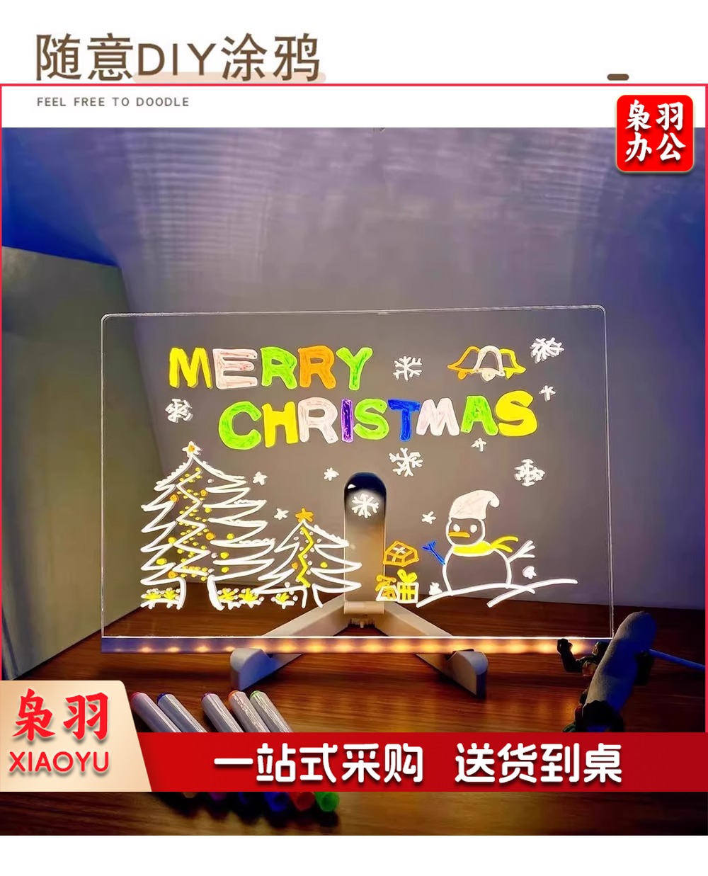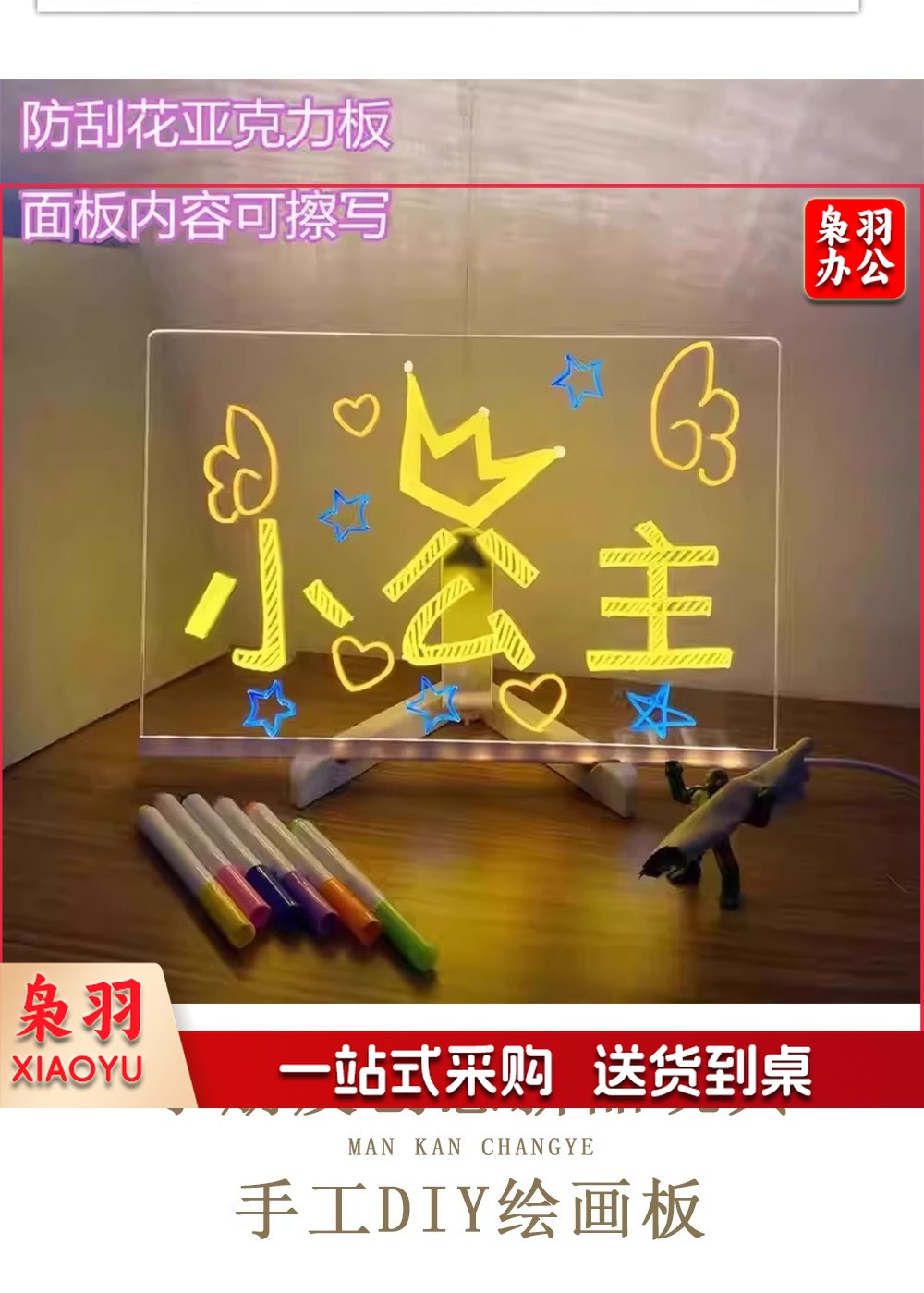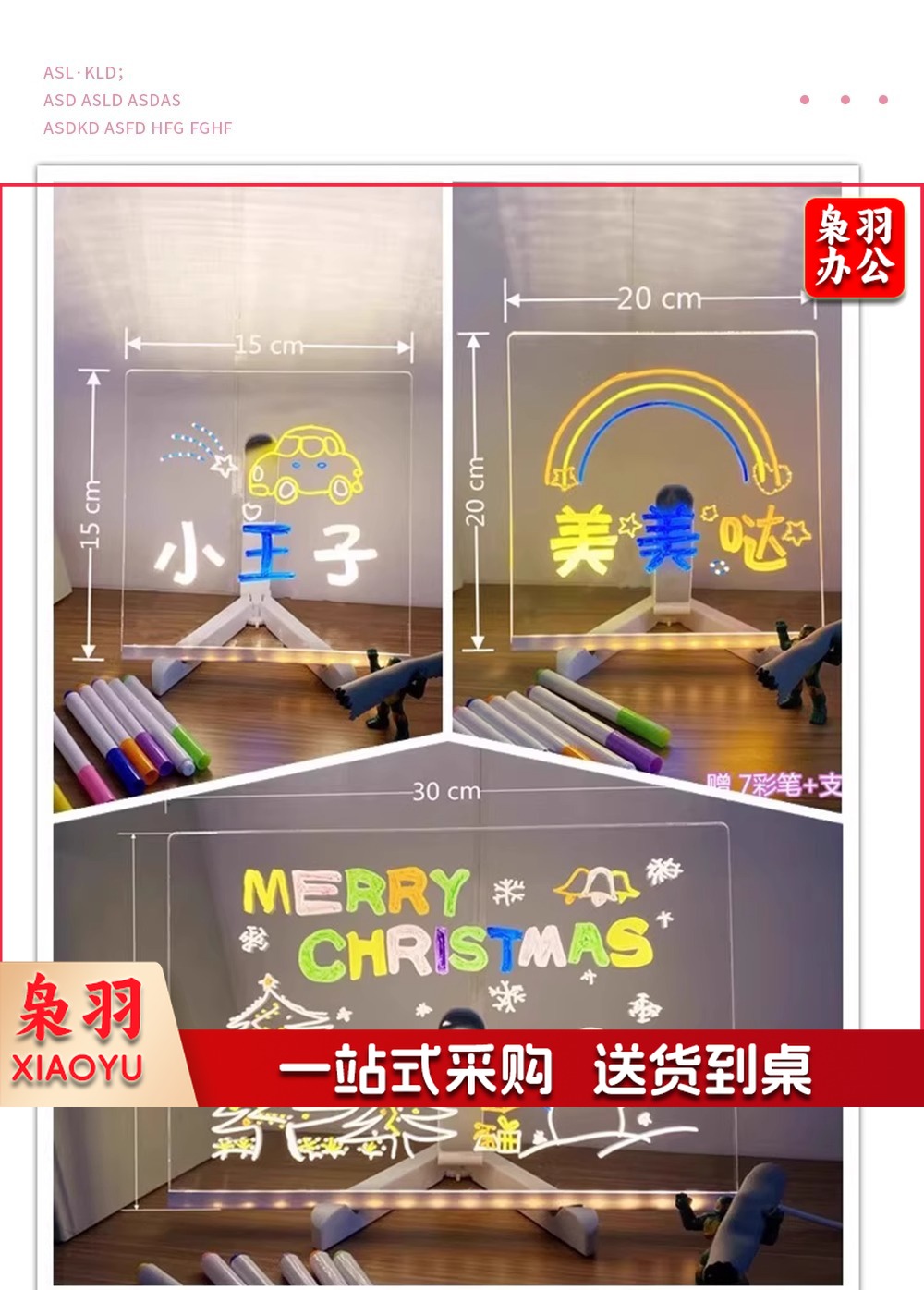 儿童发光画板ubs充电透明亚克力手写板男孩女孩DIY益智玩具留言板(大号 30x20CM【全套工具】+随机一个素描本)