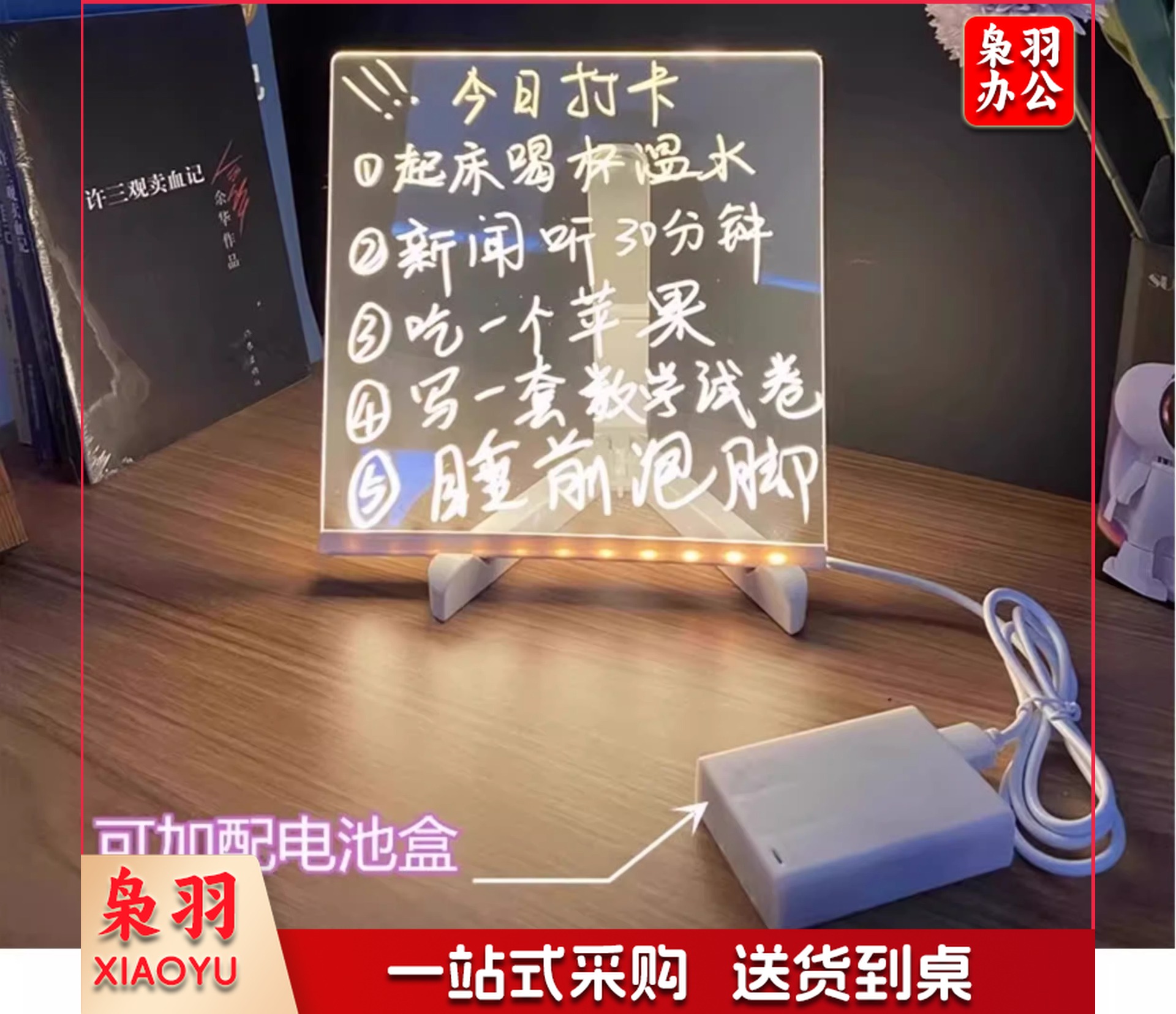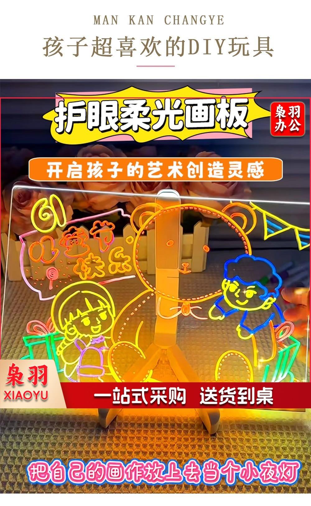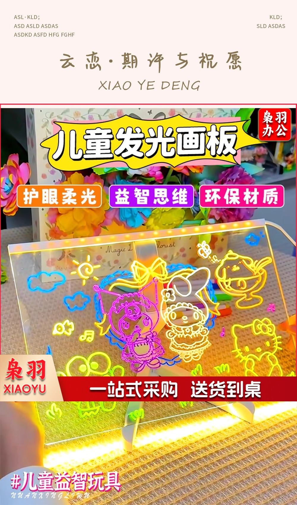儿童发光画板ubs充电透明亚克力手写板男孩女孩DIY益智玩具留言板(大号 30x20CM【全套工具】+随机一个素描本)