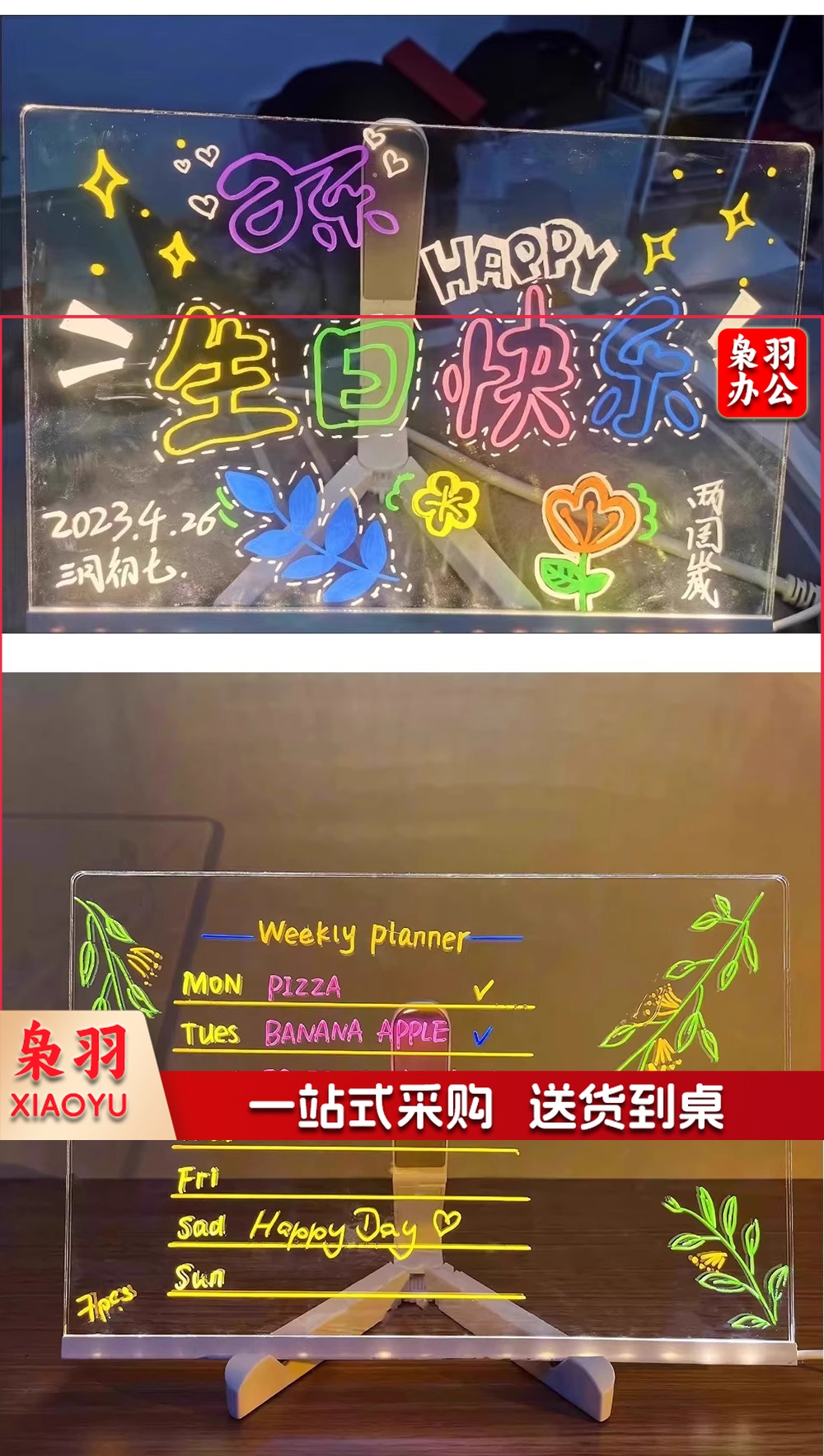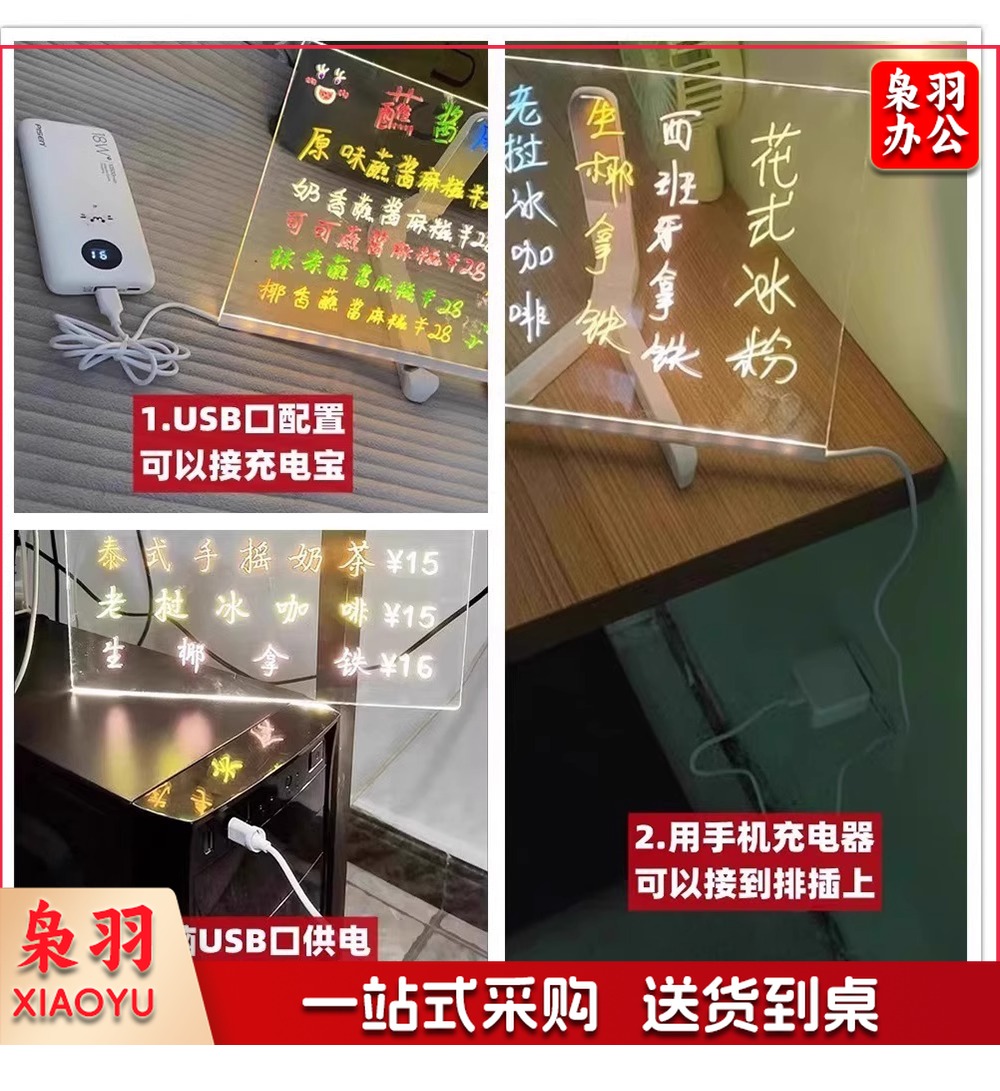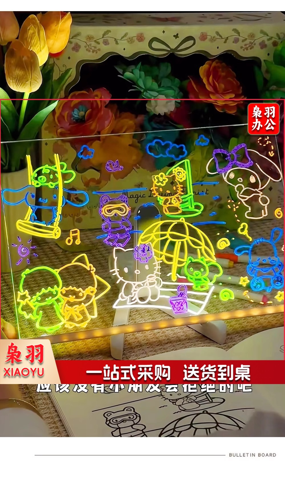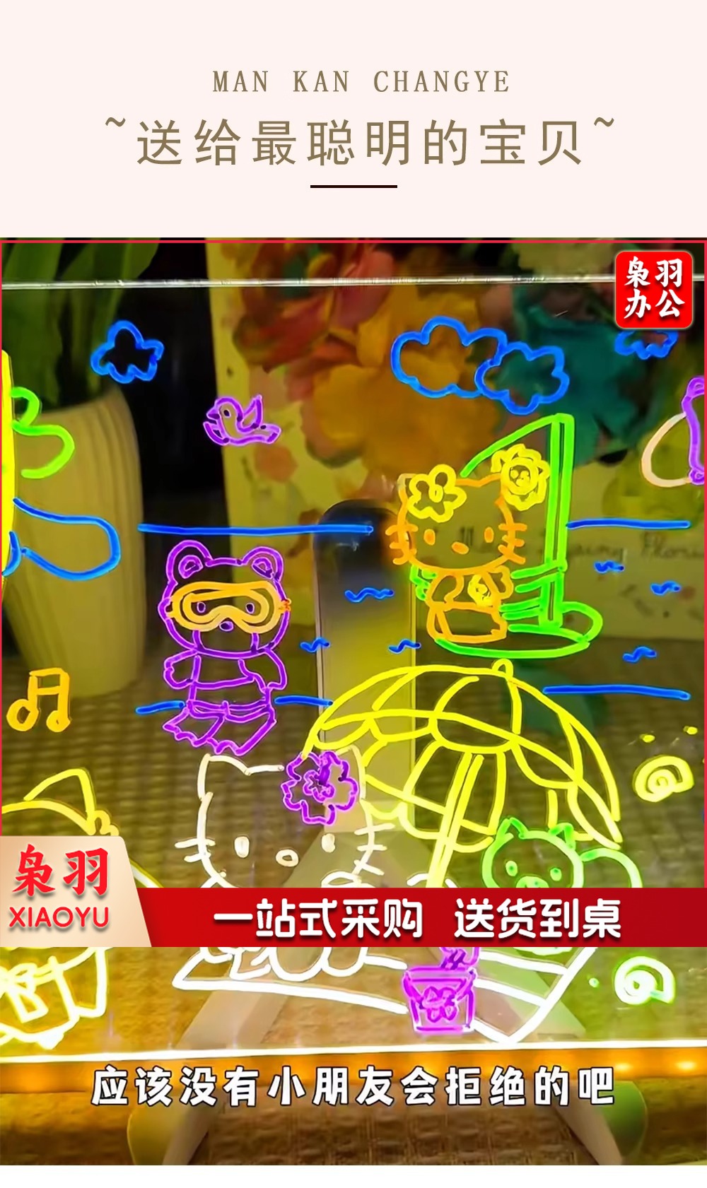 儿童发光画板ubs充电透明亚克力手写板男孩女孩DIY益智玩具留言板(大号 30x20CM【全套工具】+随机一个素描本)