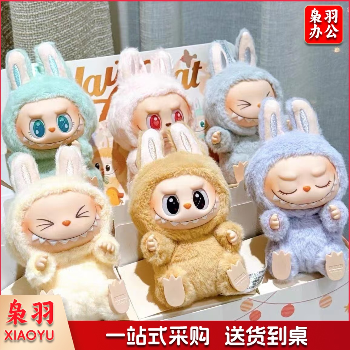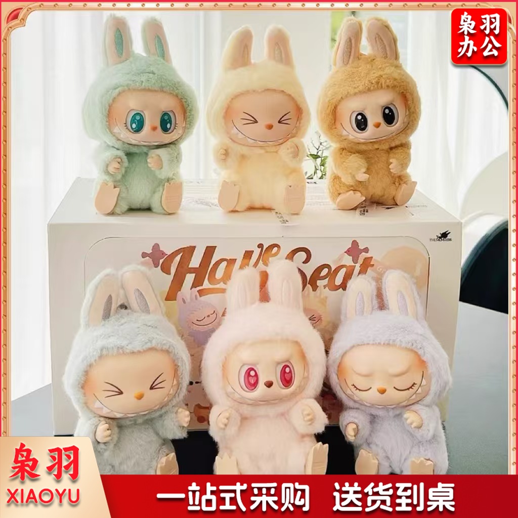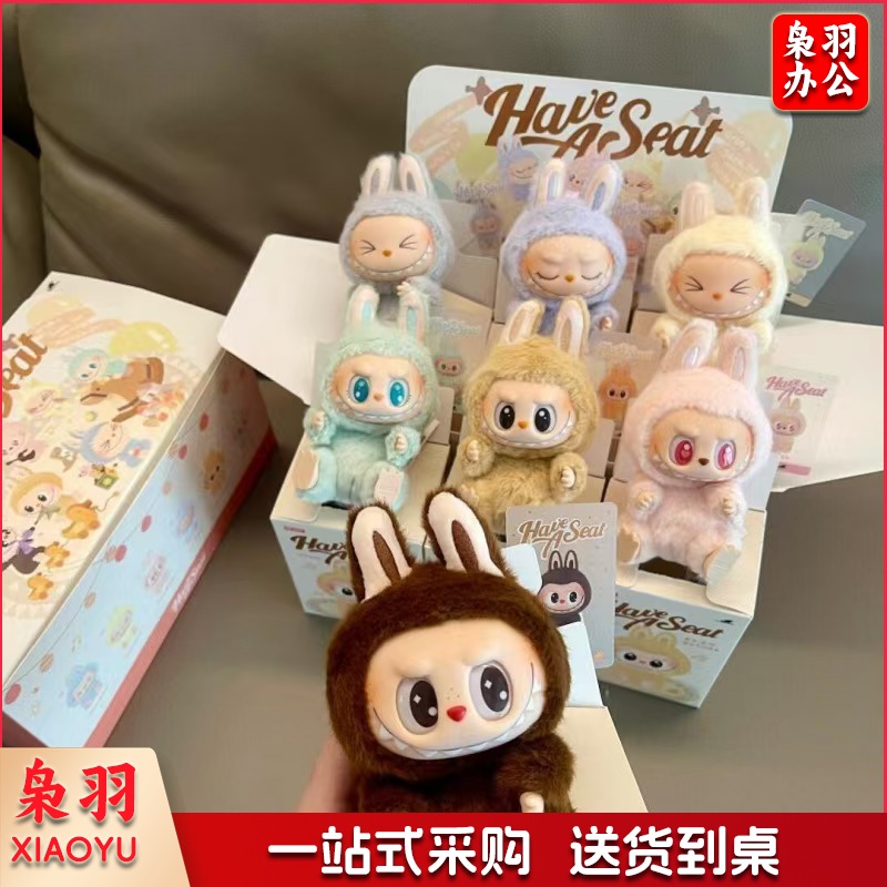 泡泡玛特LABUBU拉布布坐坐派对搪胶毛绒盲盒(2代【6个不重复】加端盒)