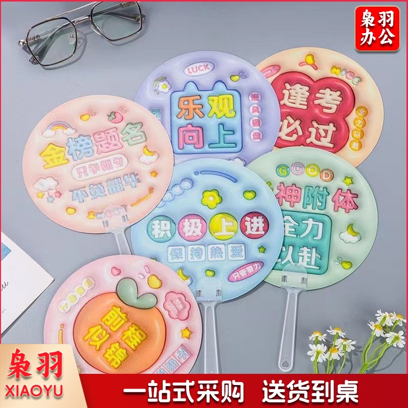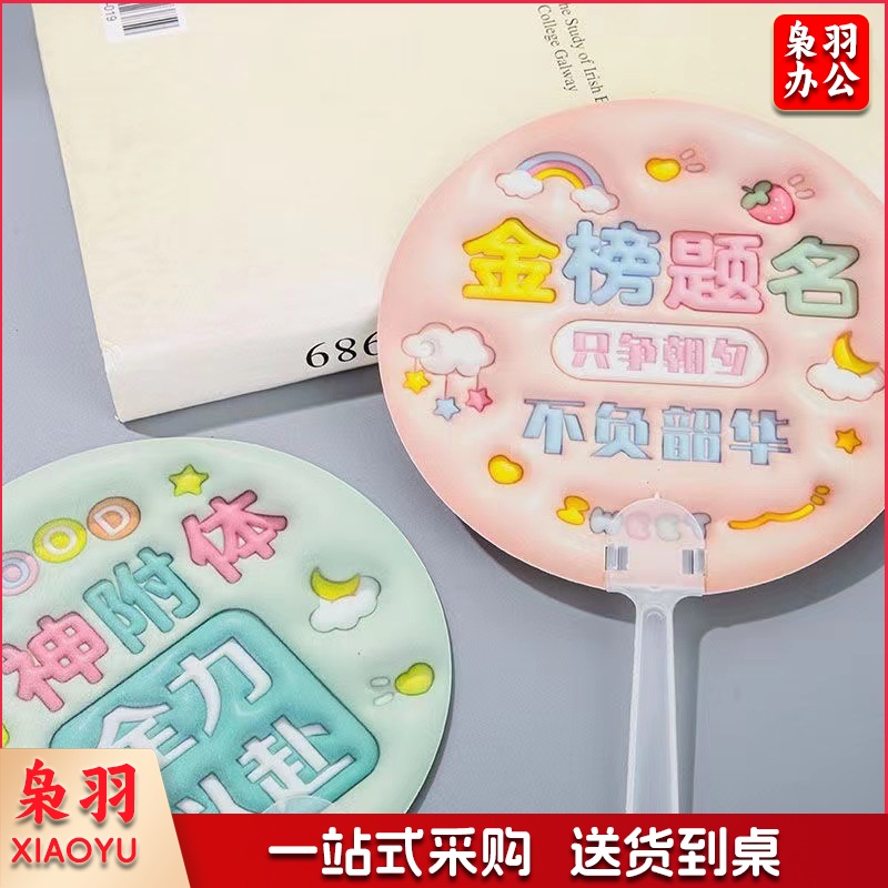 3D立体画励志文字扇子创意膨胀小圆扇学生金榜题名毕业奖品手持扇(款式任选)