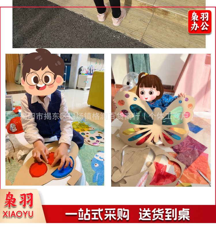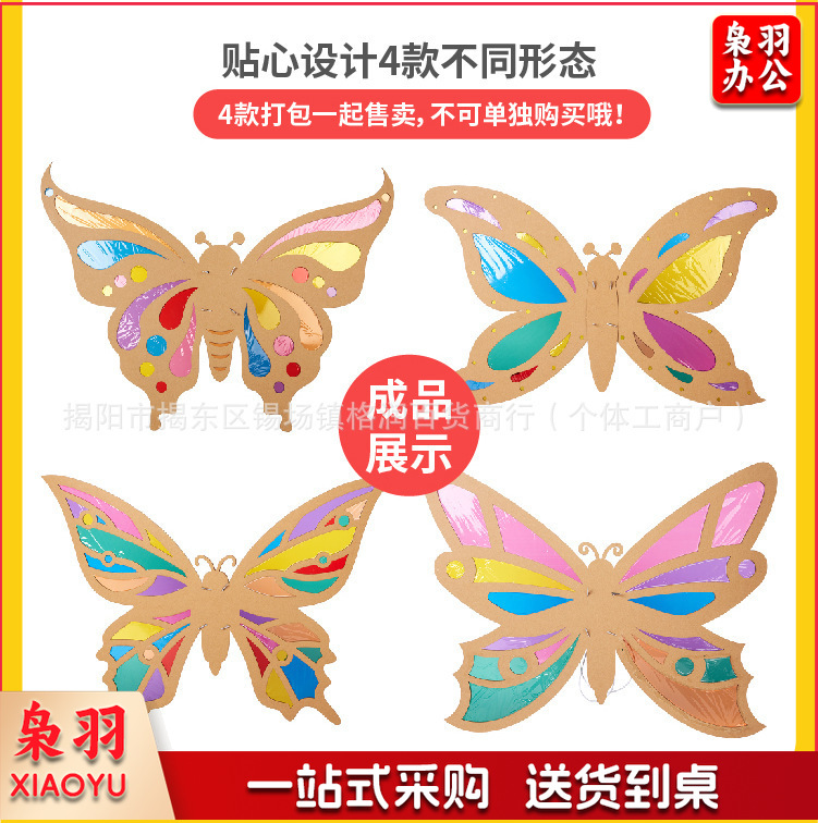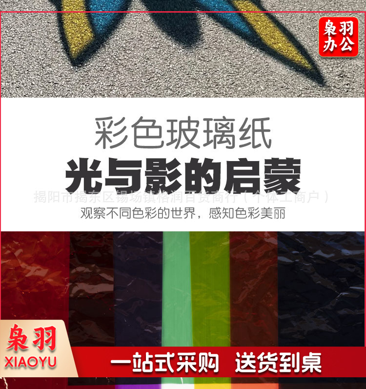 diy光影蝴蝶翅膀材料包儿童彩色玻璃纸手工透明膜七彩透光塑料片(特大玻璃纸7彩色各1张 7张装70*100cm)