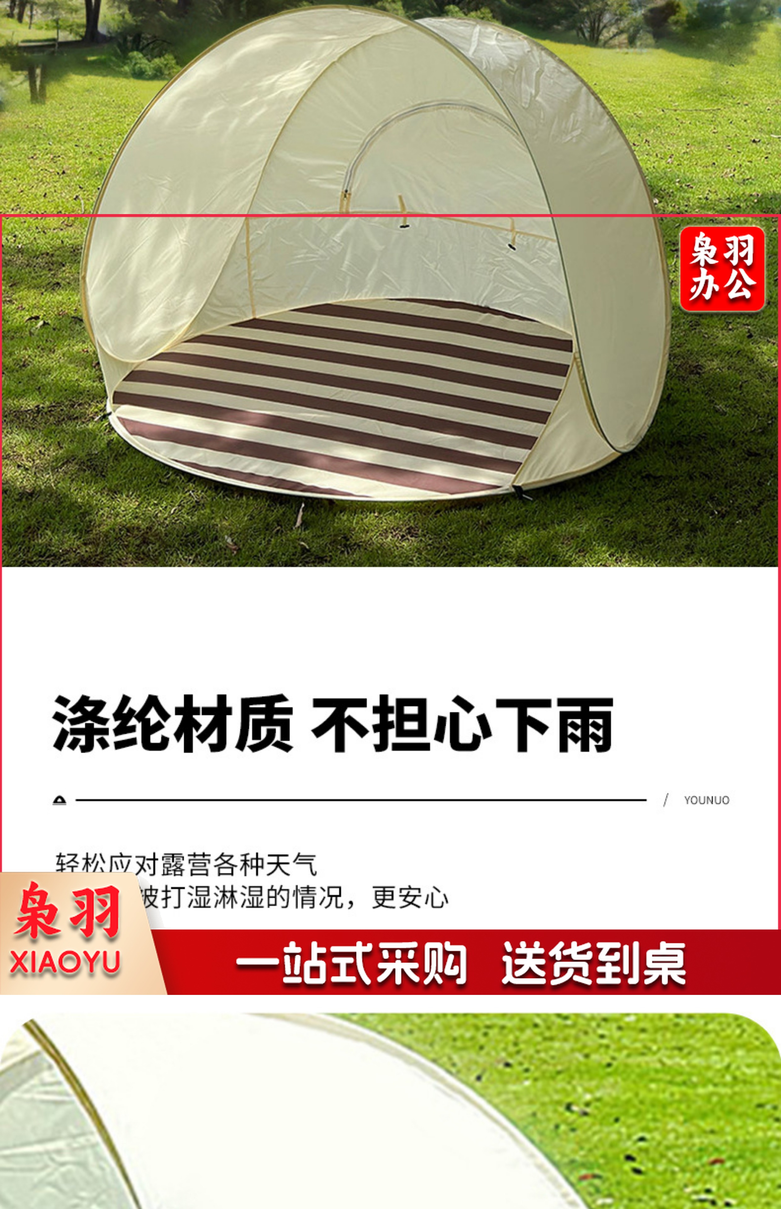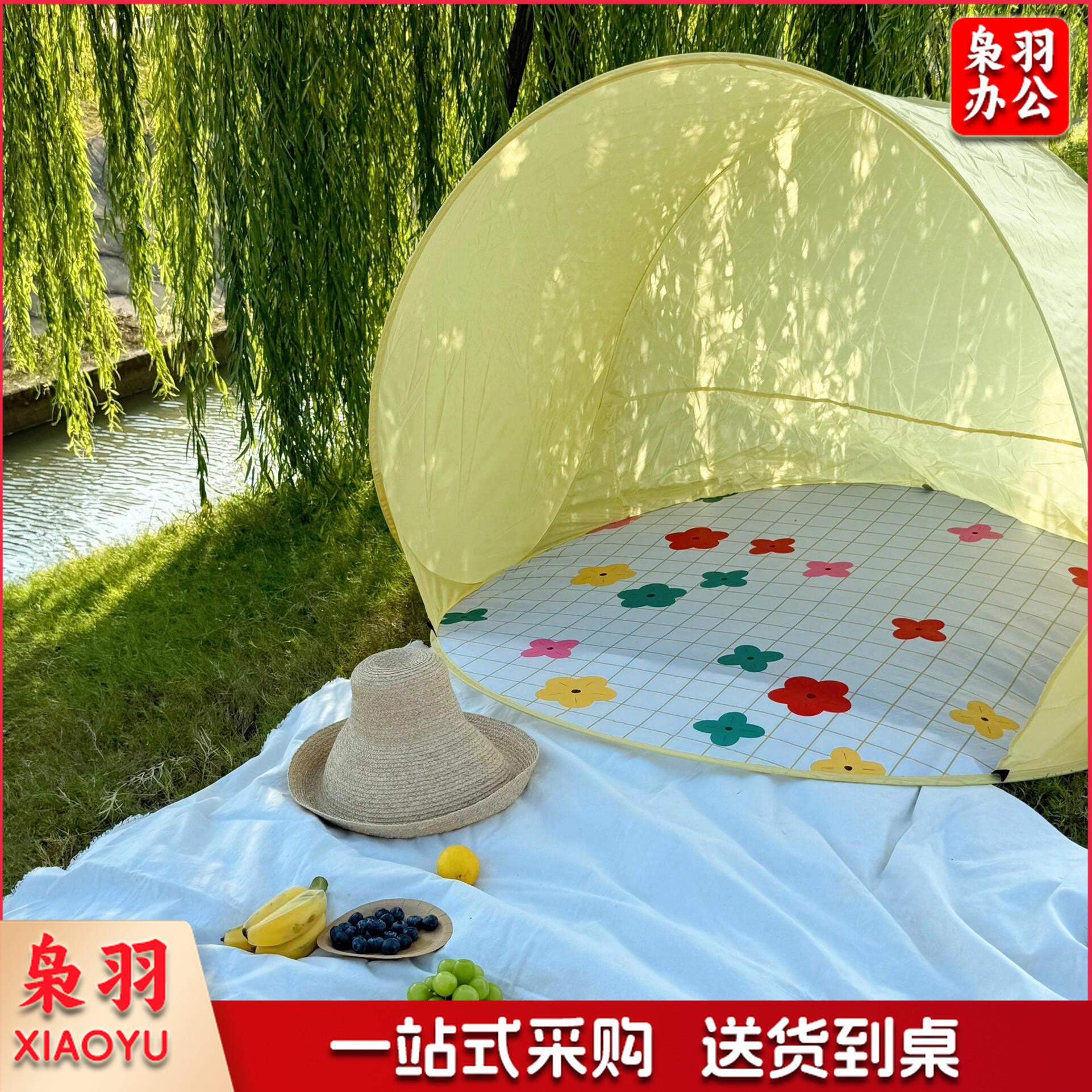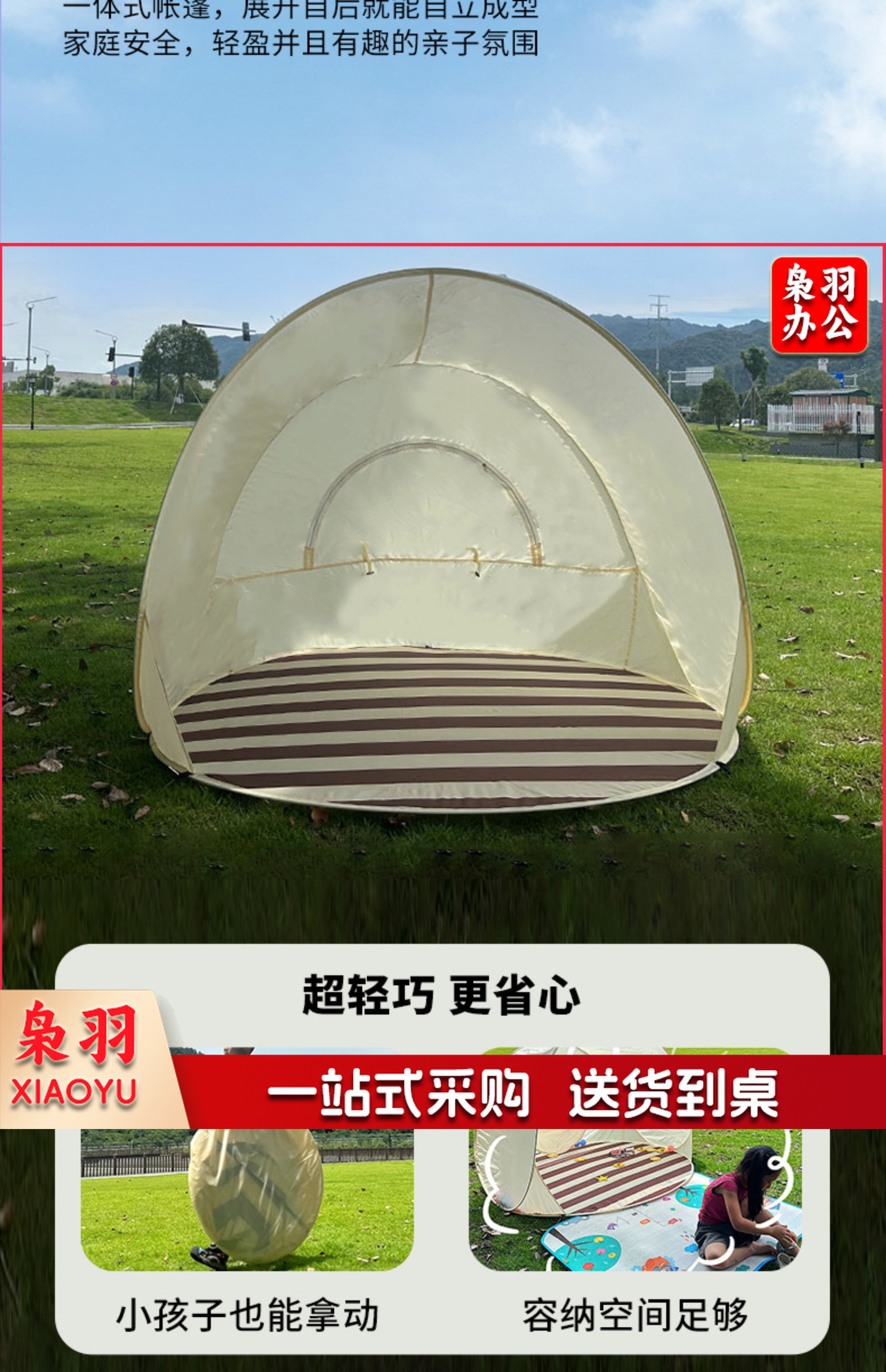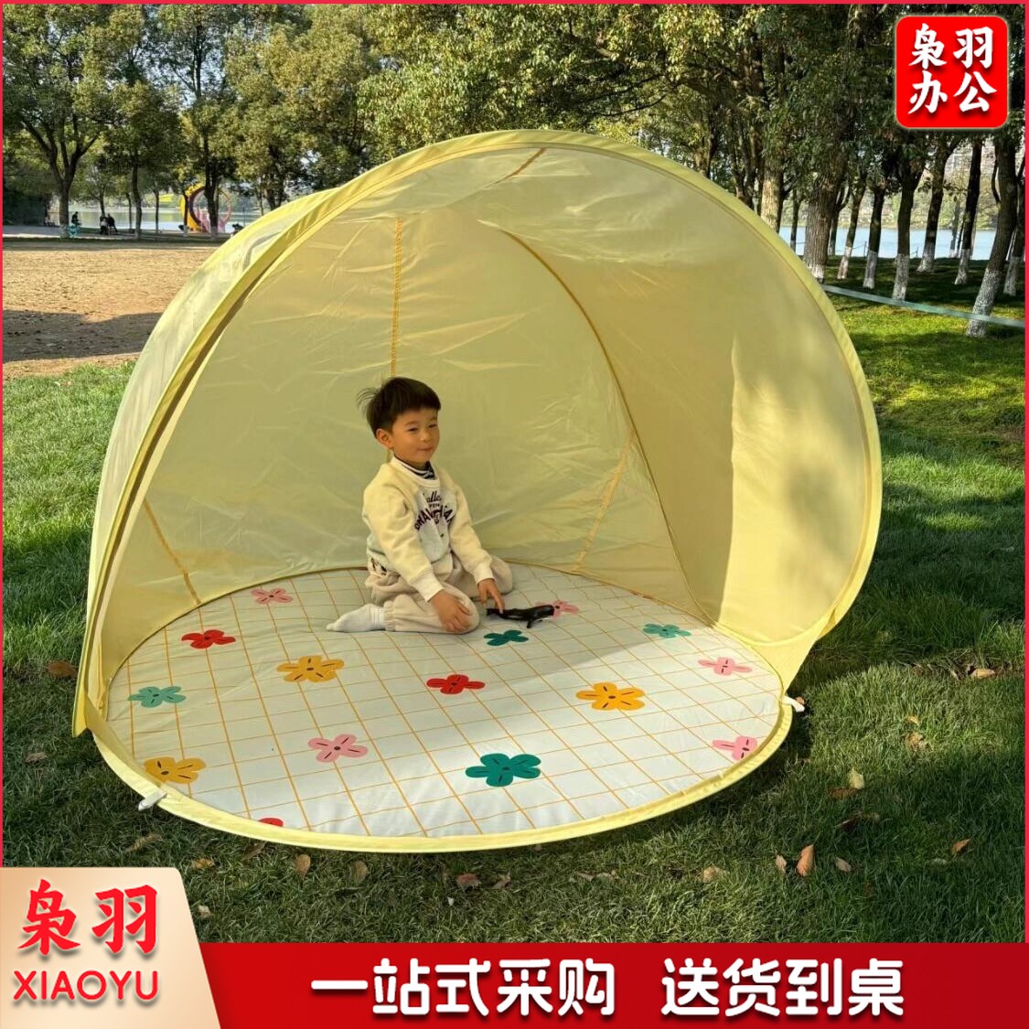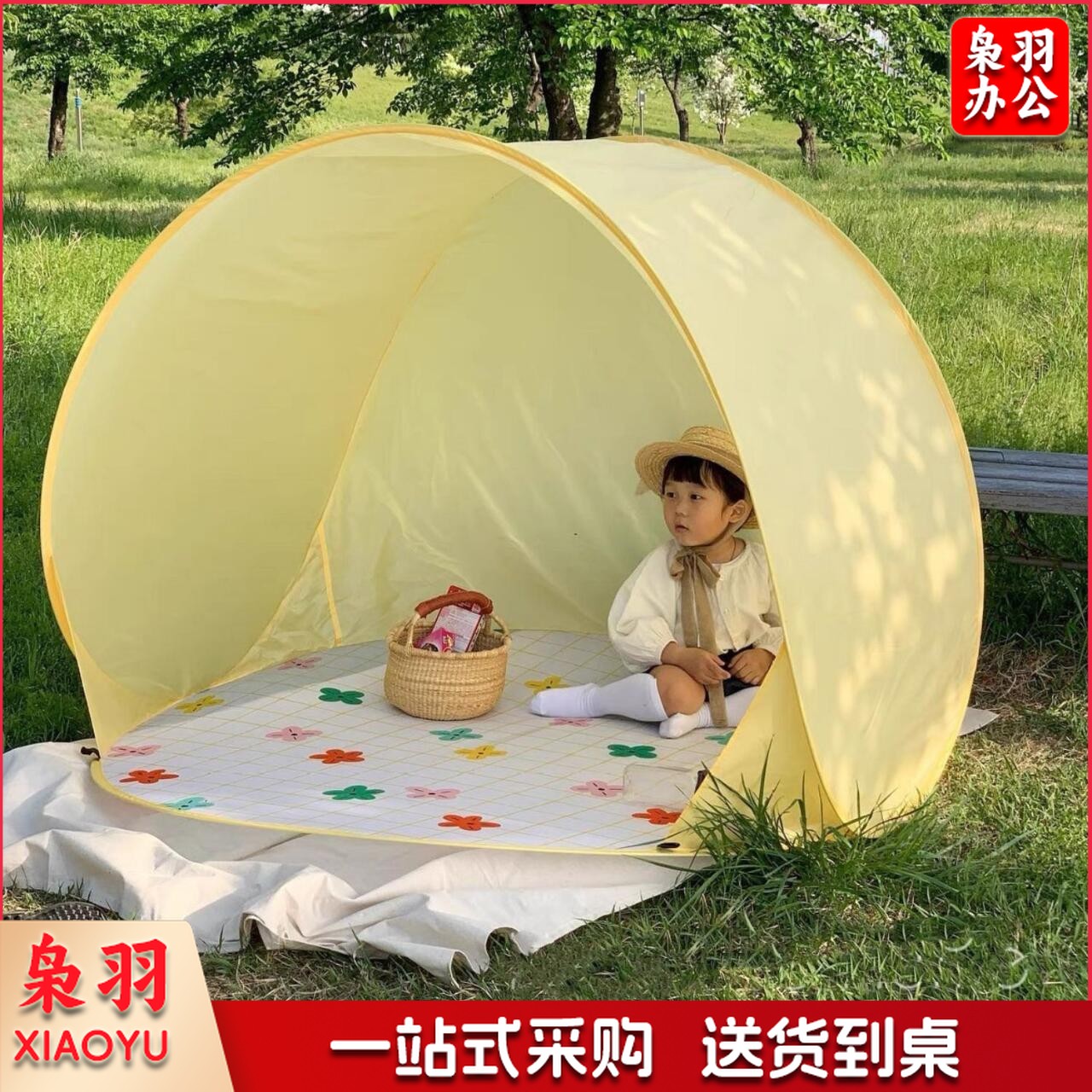 屋露营帐篷装备沙滩户外游戏一键春游折叠开合儿童防雨便携式防晒(浅黄色146cm*146cm*110cm)