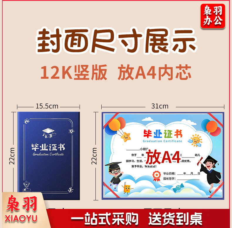 幼儿园毕业证书离园纪念册外壳大班小朋友证书奖状外壳(《12K竖版》蓝色磨砂丨01款A4内页)内页可选