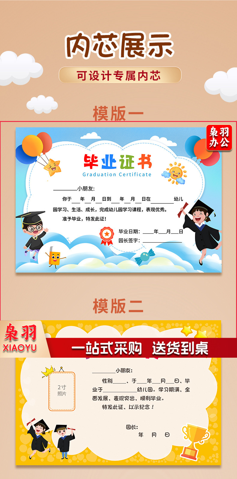 幼儿园毕业证书离园纪念册外壳大班小朋友证书奖状外壳(【16K竖版】蓝色磨砂丨03内页)内页可选
