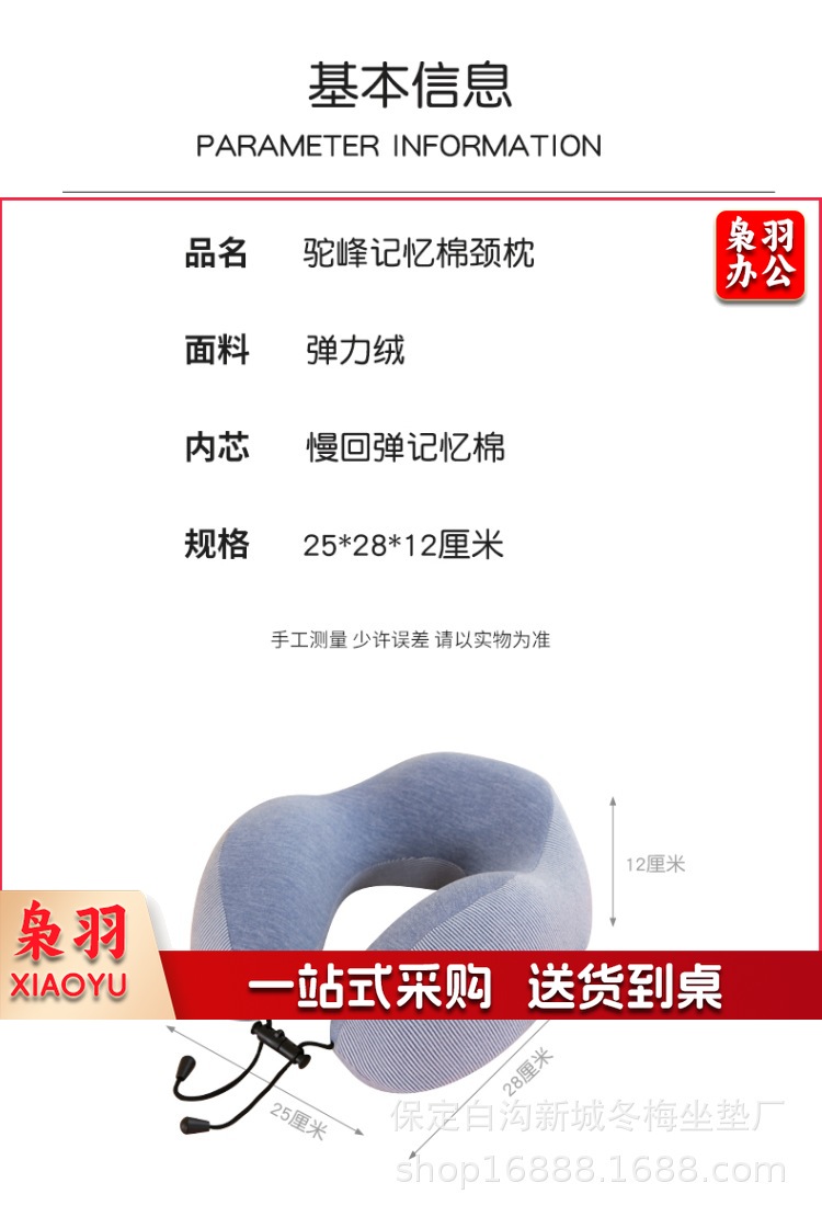 源头厂家批发旅行记忆棉u型枕办公室午休单驼峰护颈枕午睡枕25*28*12cm