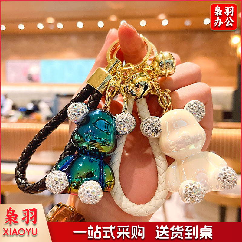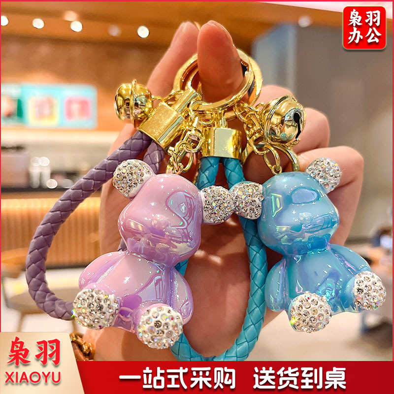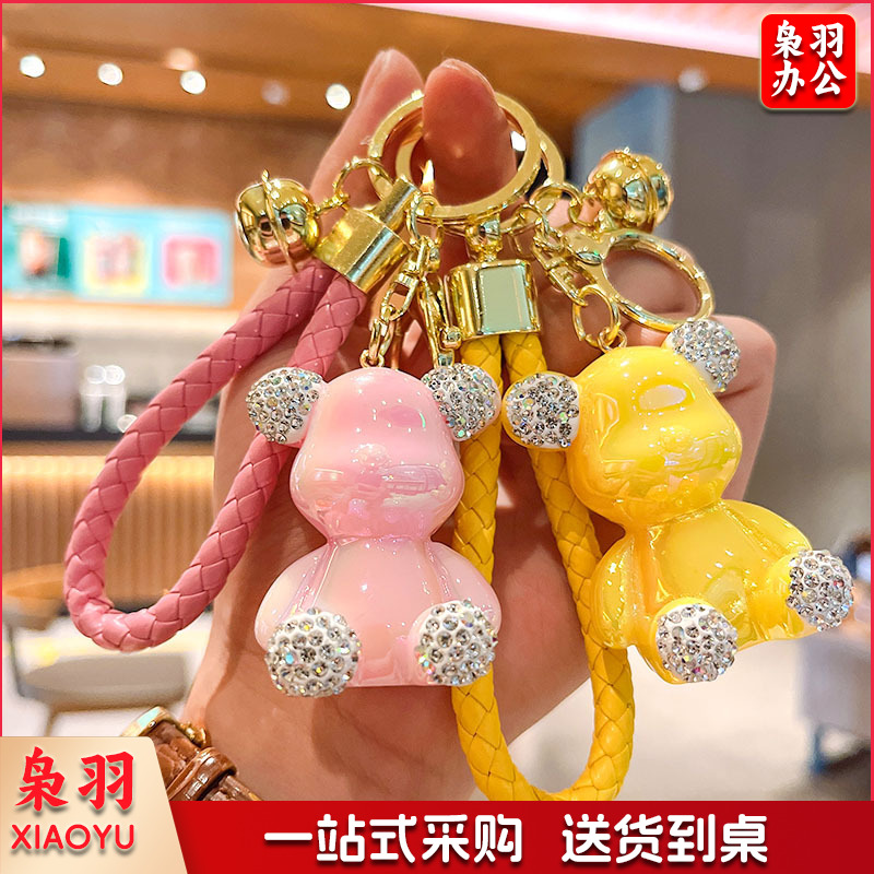 卡通镶钻亮面暴力熊汽车钥匙扣挂件女学生包包挂饰地推小礼品
